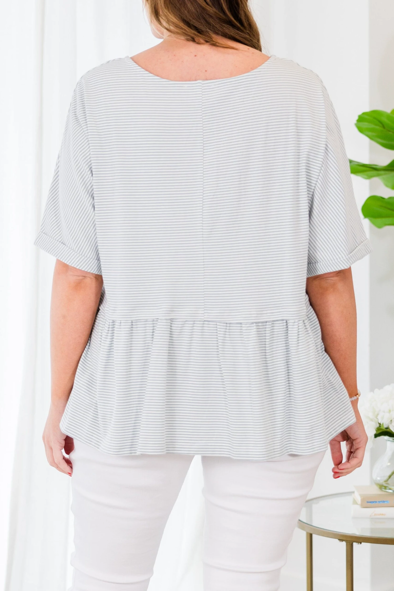 Welcome this FAB top into your wardrobe! It features a charming babydoll design and playful stripe pattern, making it the perfect choice for a casual day out! Embrace comfort and style with this versatile piece, designed to give you a welcoming smile wherever you go!