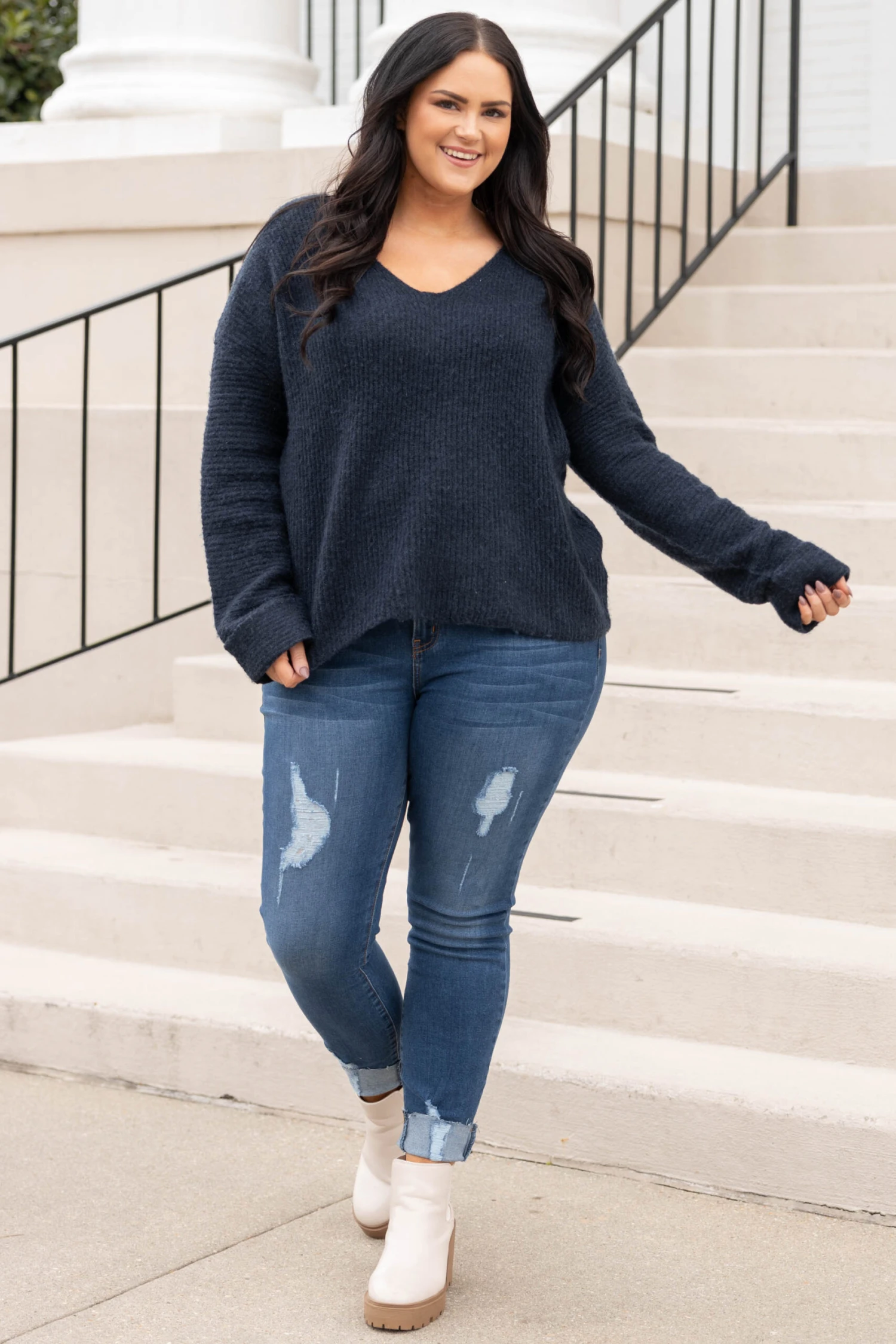 You’ll feel so much better if you grab this beauty! This sweater has a soft navy color with with a ribbed texture that is so cozy and sweet! The stretchy figure flattering fit is perfect for every day wear this season! Style this sweater with some distressed skinnies and boots for a casual chic look!