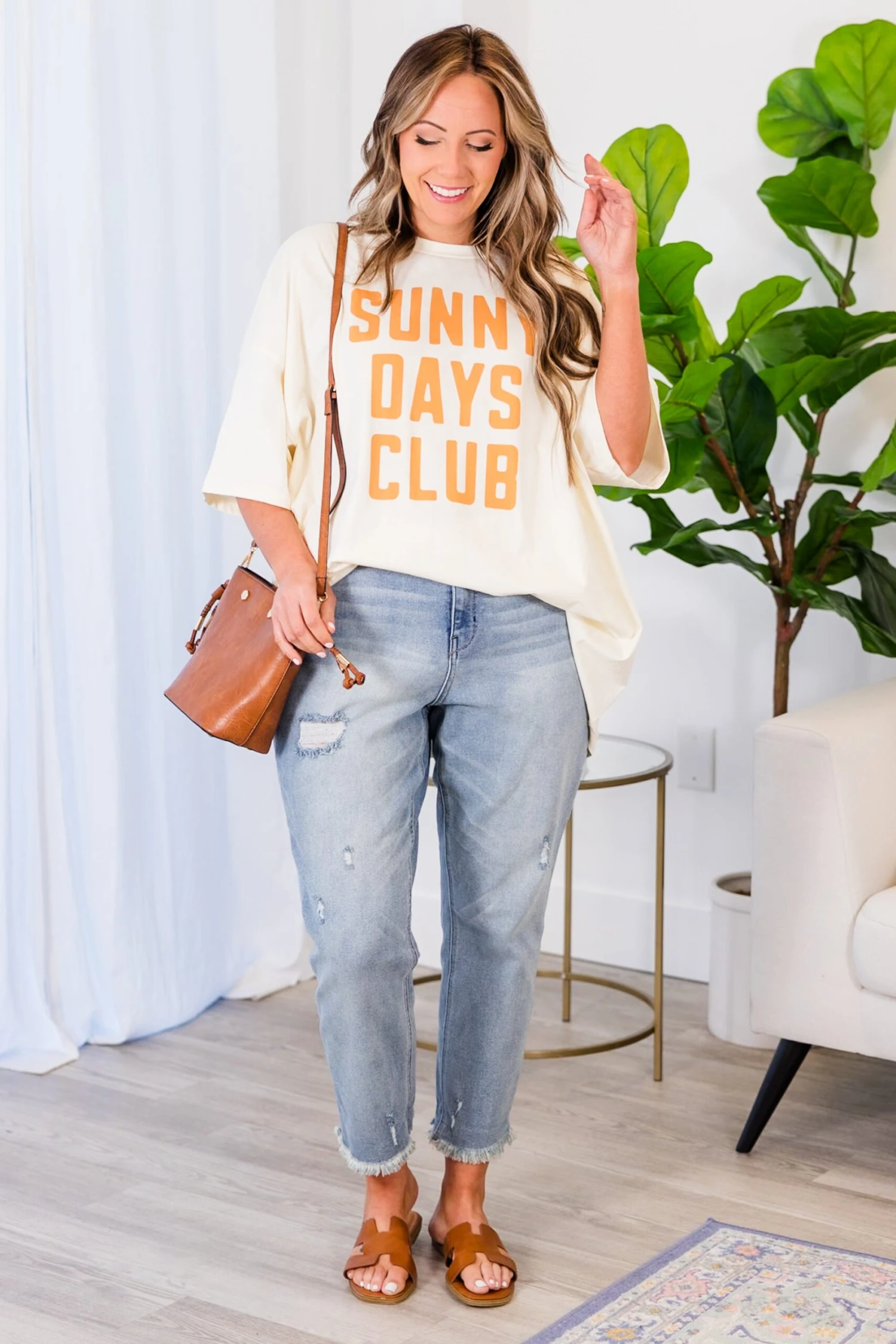 Let your style bloom through in this FAB tee! It boasts an oversized fit and features an adorable graphic. The classic color pairs perfectly with skinnies or leggings, making it a versatile and stylish addition to any wardrobe!