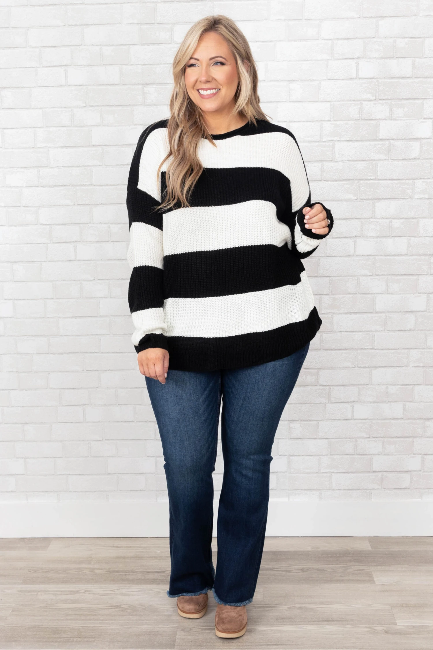 We have hope that you will love this gorgeous sweater! This sweater has a neutral color with a striped design that is so sweet! Throw this cutie on with some jeans and booties for a casual chic look!