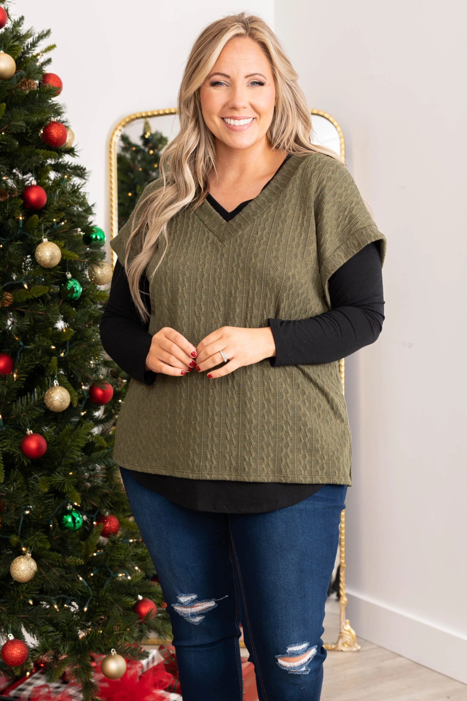 We anticipate that you will love this amazing sweater vest! This sweater vest has a lovely olive color that is perfect to pair with all of your faves throughout the season! The stretchy, figure flattering fit is great for all day wear! Style this sweater vest with a long sleeve top, some skinnies, and booties for a casual chic look!