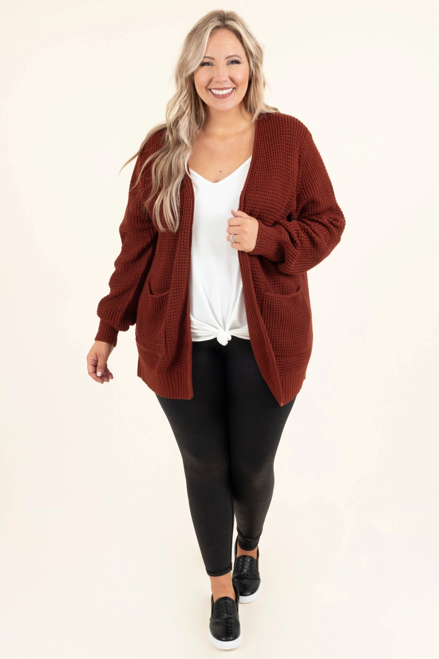 Throw these beauties on while you’re balancing everything life throws your way! These leggings are so cute and comfy that you will want to wear them everyday! The black color and figure flattering fit is perfect for pairing with a cute top and cardi, or dress it up with a flirty shirt and heels for a trendy, chic look!Â