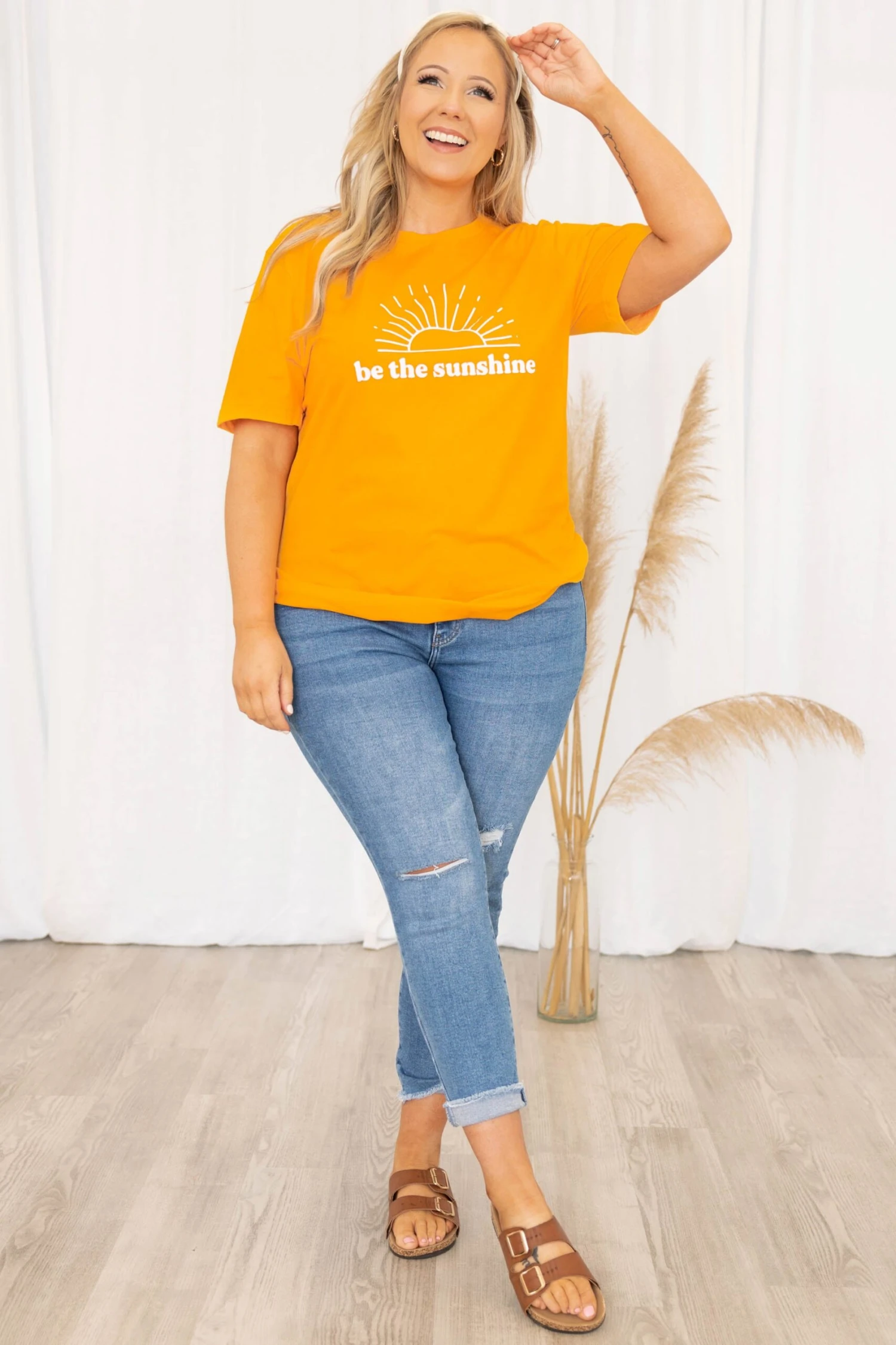 Be as beautiful as the sun in this tee! The yellow orange color is so perfect for spring and the sun graphic is so cute! This babe is so soft and is perfect for all day wear! Style it with some skinnies and cute headband for the perfect look!