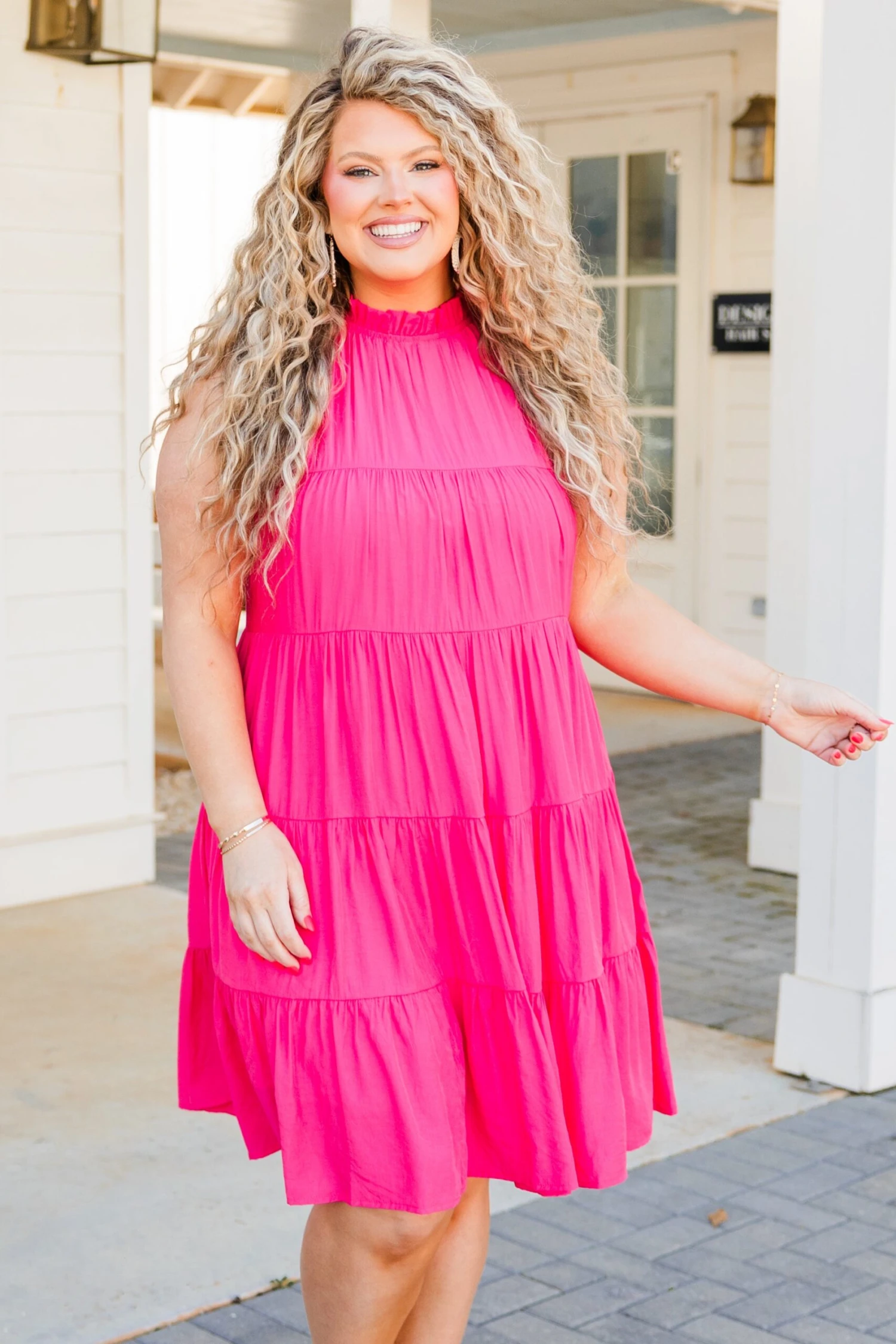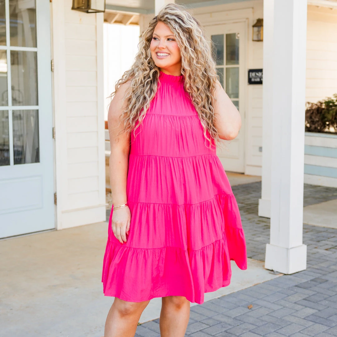 It’s a beautiful day for a beautiful dress! It features a bold hot pink color and babydoll design, paired with a halter top for a stunning look! The simple colors and design of this dress make it an easy style to mix and match accessories with!Â