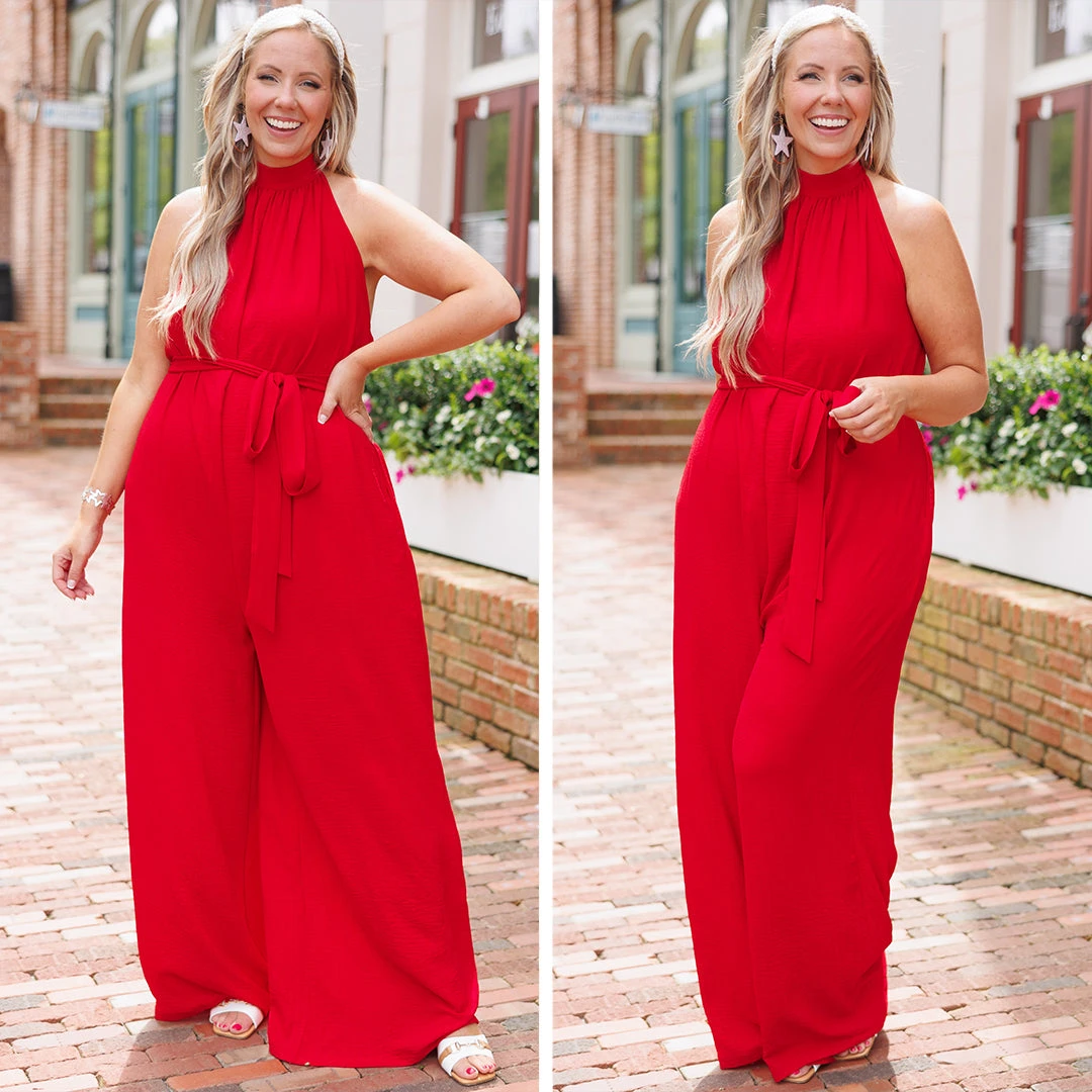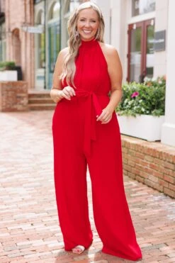 This jumpsuit is timeless! It features a beautiful, bold red color and the halter style is the perfect added touch! This jumpsuit is figure-flattering for all body types and comfortable for all-day wear! Pair this jumpsuit with your favorite heels and accessories for a chic, trendy outfit!