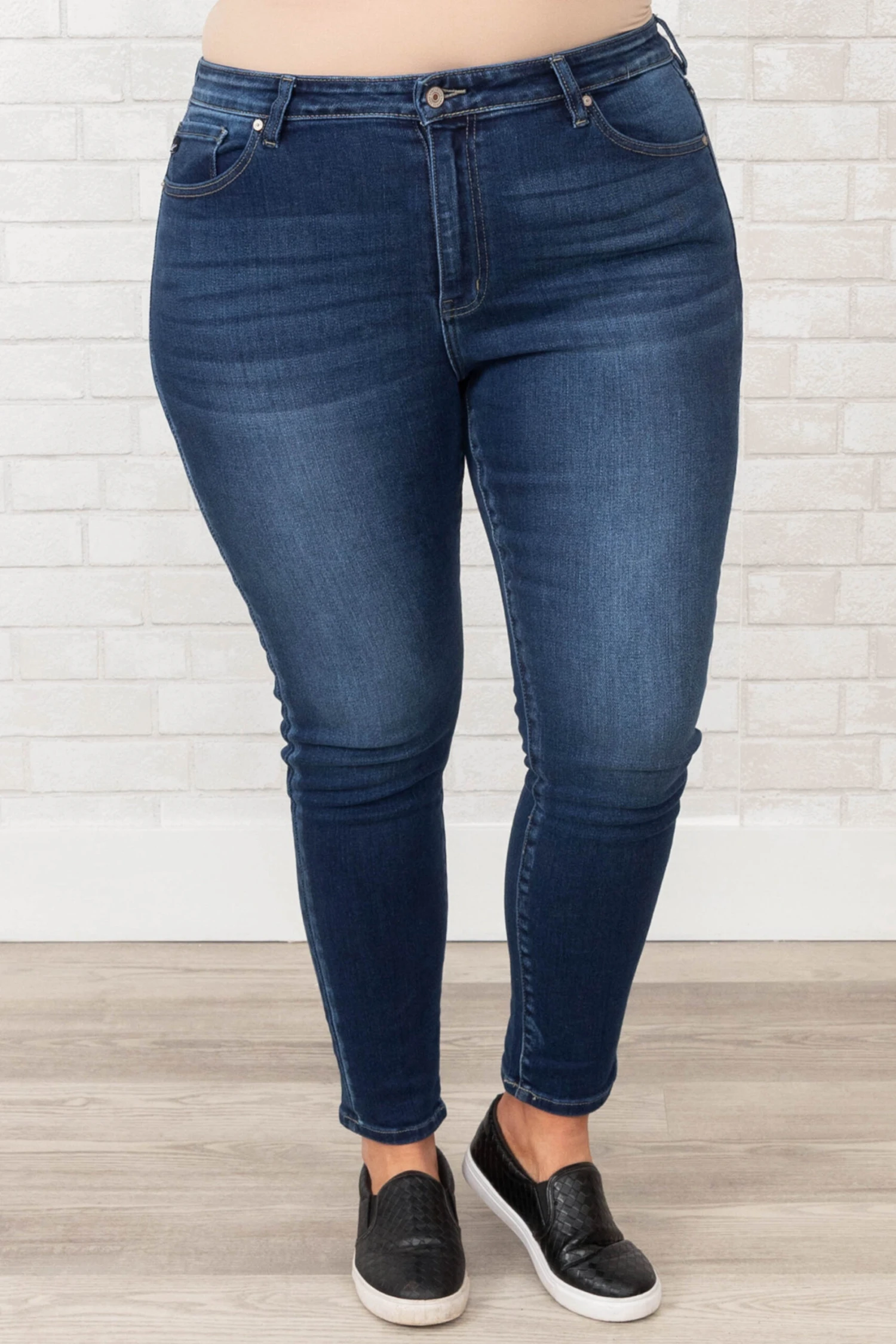 You’ll be a sight to see in these gorgeous jeans! These jeans have a trendy dark wash with a stretchy, figure flattering fit that is so easy to pair with all of your fave tops and accessories for a casual chic look!