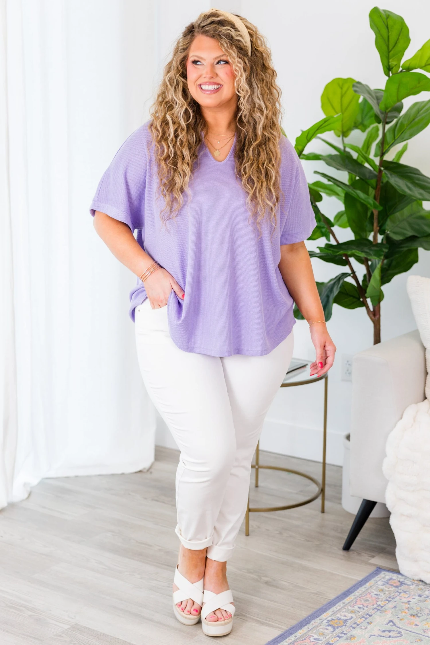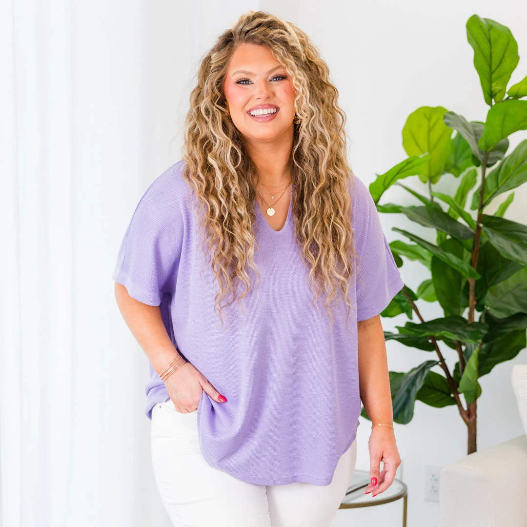 Elevate your wardrobe with our Bellflower Top in lilac! This knit v-neck design is as versatile as it is stylish! Get ready to feel confident and inspired in this must-have piece!