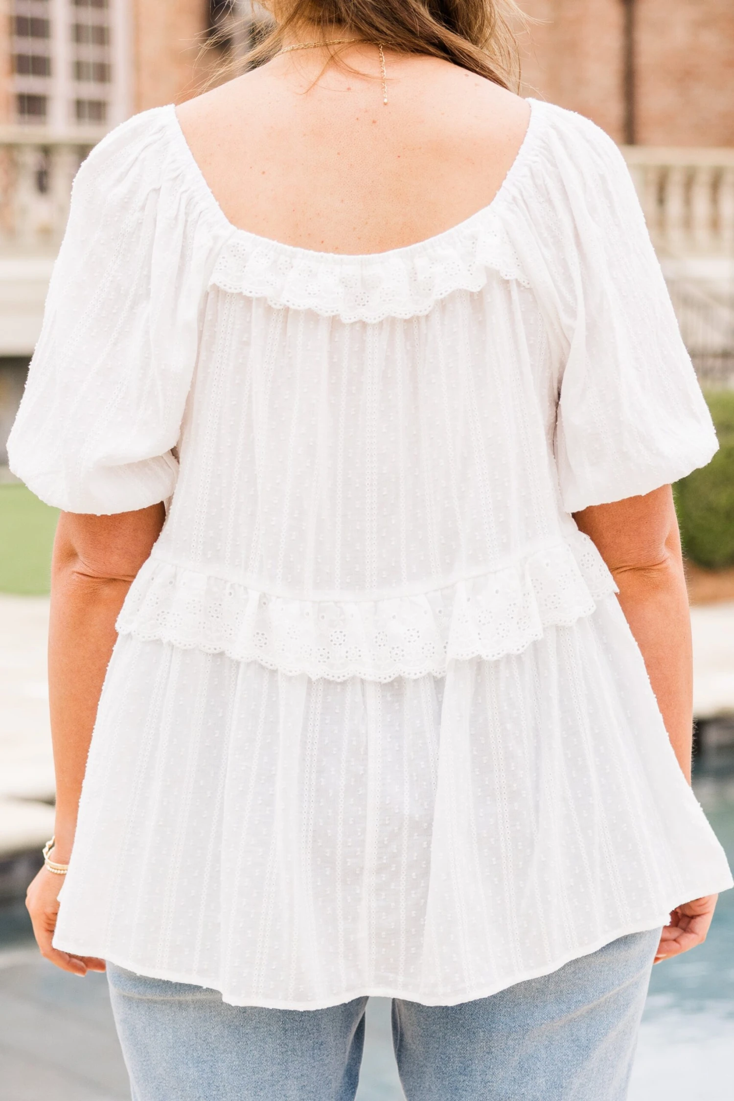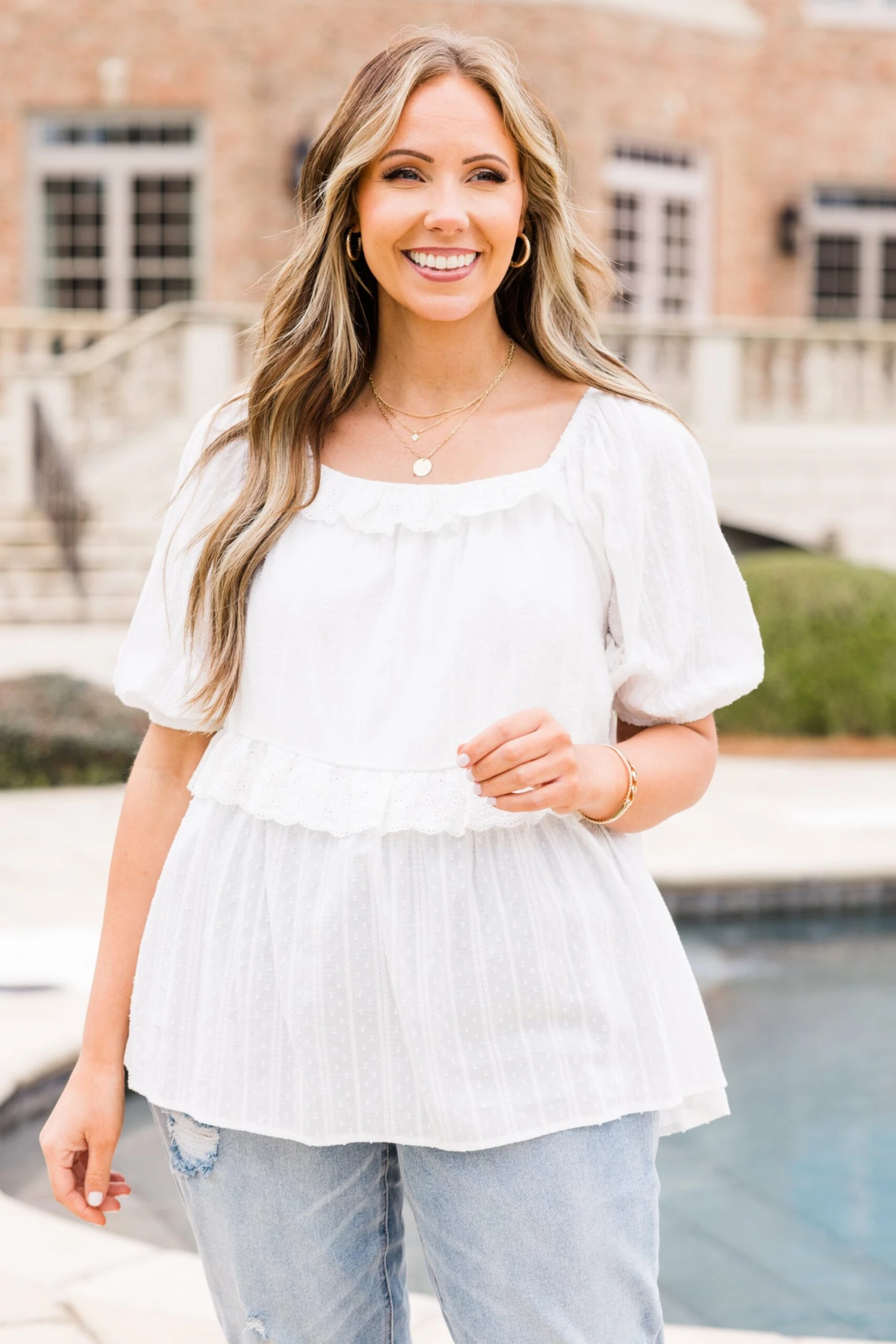 Start a new chapter and set the trend in this gorgeous top! The bubble sleeves and delicate lace detailing add a touch of class to any outfit! Pair with distressed denim or colored pants for a sassy and chic look! Expertly crafted to bring you the perfect blend of style and comfort!