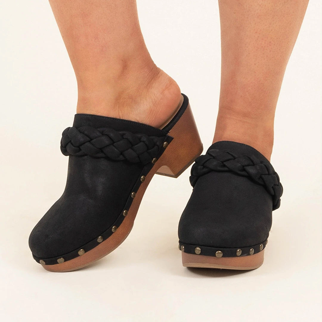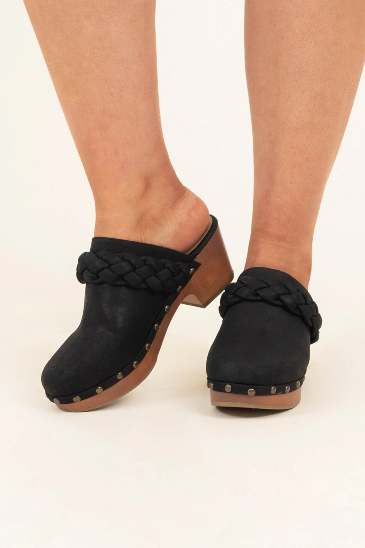 These shoes are a new world of chic! These mules have a classic black color and trendy braided design across the top! The block heel and backless design ensures a comfy fit! Style these shoes with a cute top and skinnies or a sassy dress for an effortlessly chic look!