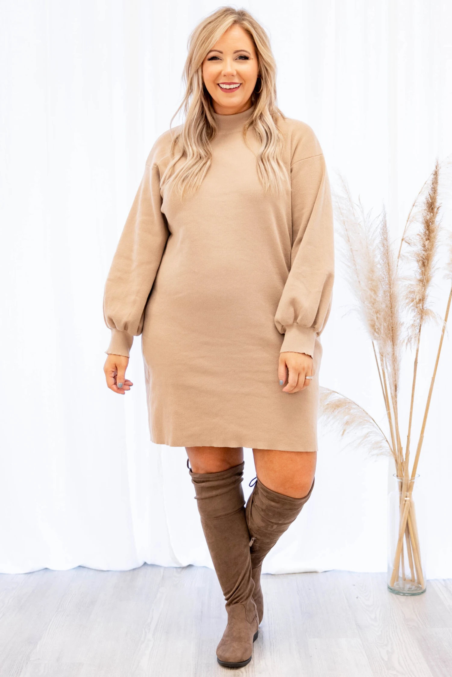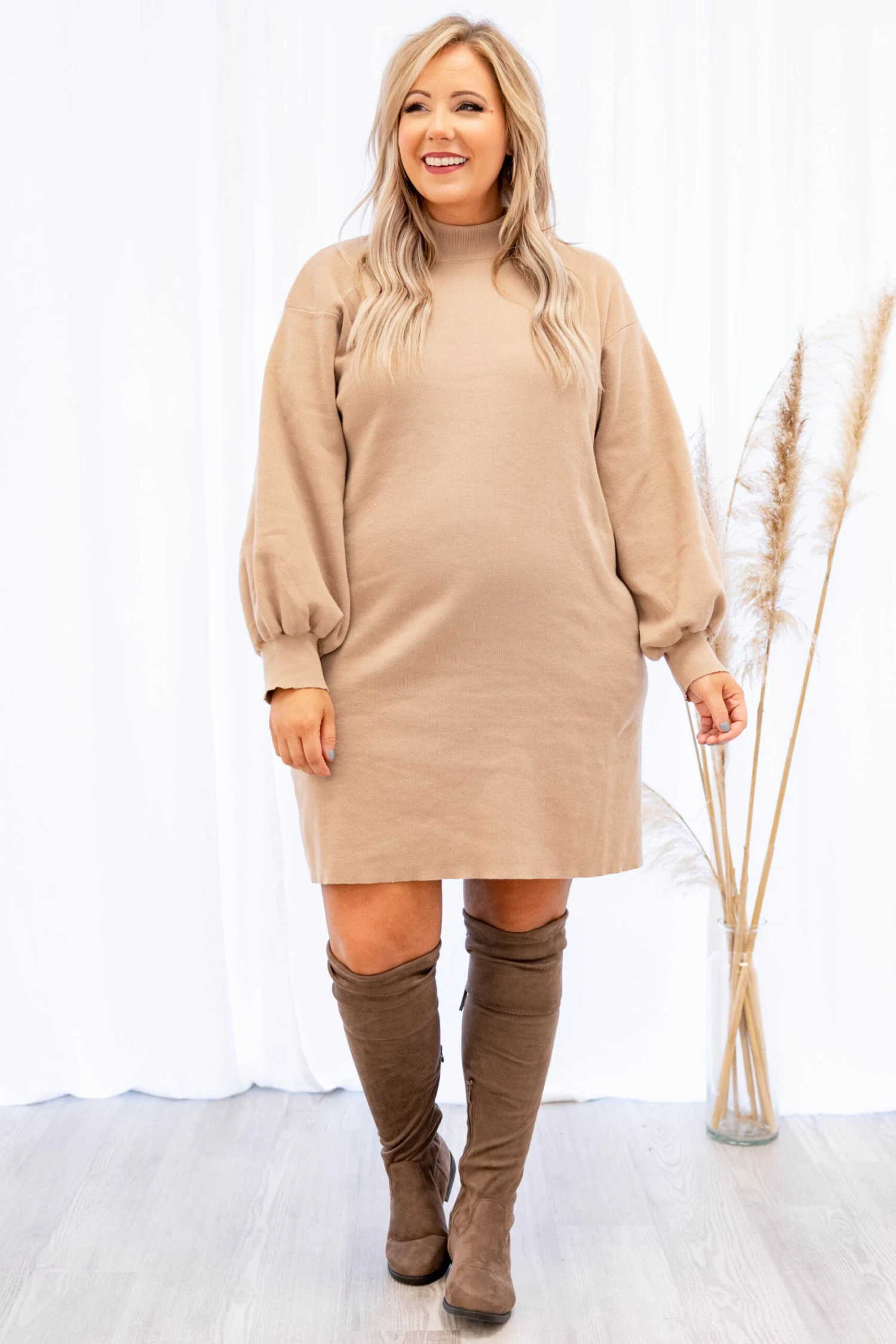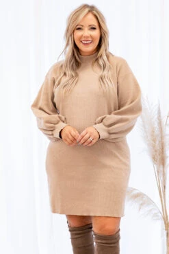 We love this new chic sweater! This chic dress has a beautiful taupe brown color you can dress up or down and style for every occasion! It’s comfortable for all-day wear, has a figure-flattering fit, and features the cutest high neckline perfect for laying jewelry! Simply style this dress with sneakers or booties for an easy everyday look!