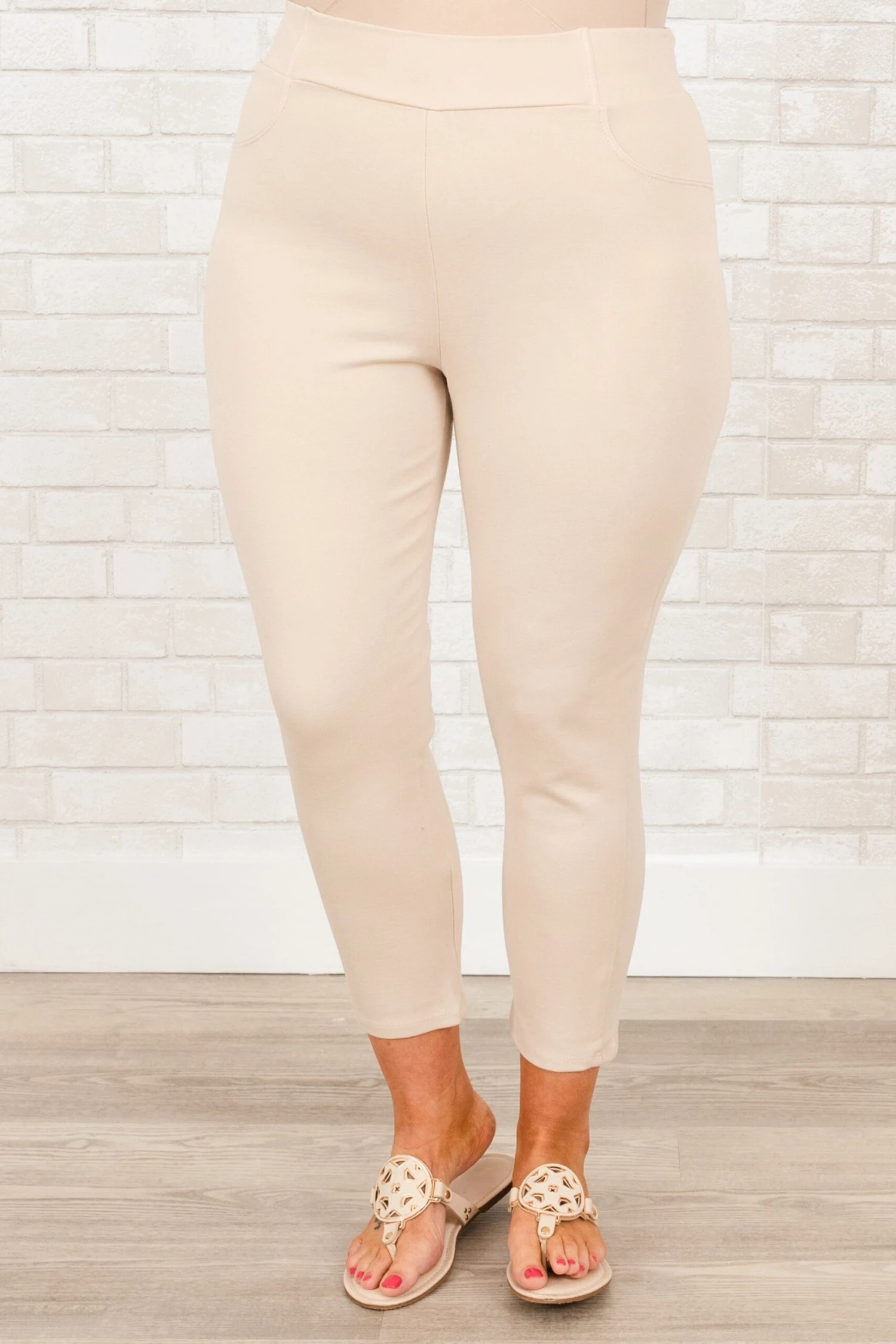 A little edgy, a little sophisticated, and a whole lotta comfy!! These are the perfect oatmeal stretchy pants to wear for so many occasions! We love them paired with tunics, tops, and even for work with a dressy top! So versatile, which makes them a closet staple!