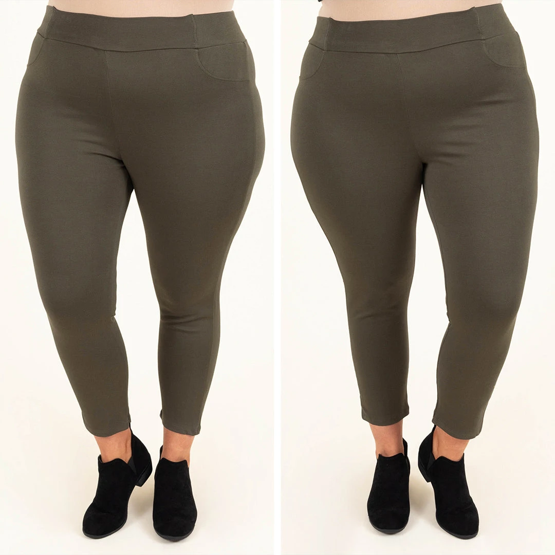A little edgy, a little sophisticated, and a whole lotta comfy!! These are the perfect olive, stretchy pants to wear for so many occasions! We love them paired with tunics, tops, and even for work with a dressy top! So versatile, which makes them a closet staple!