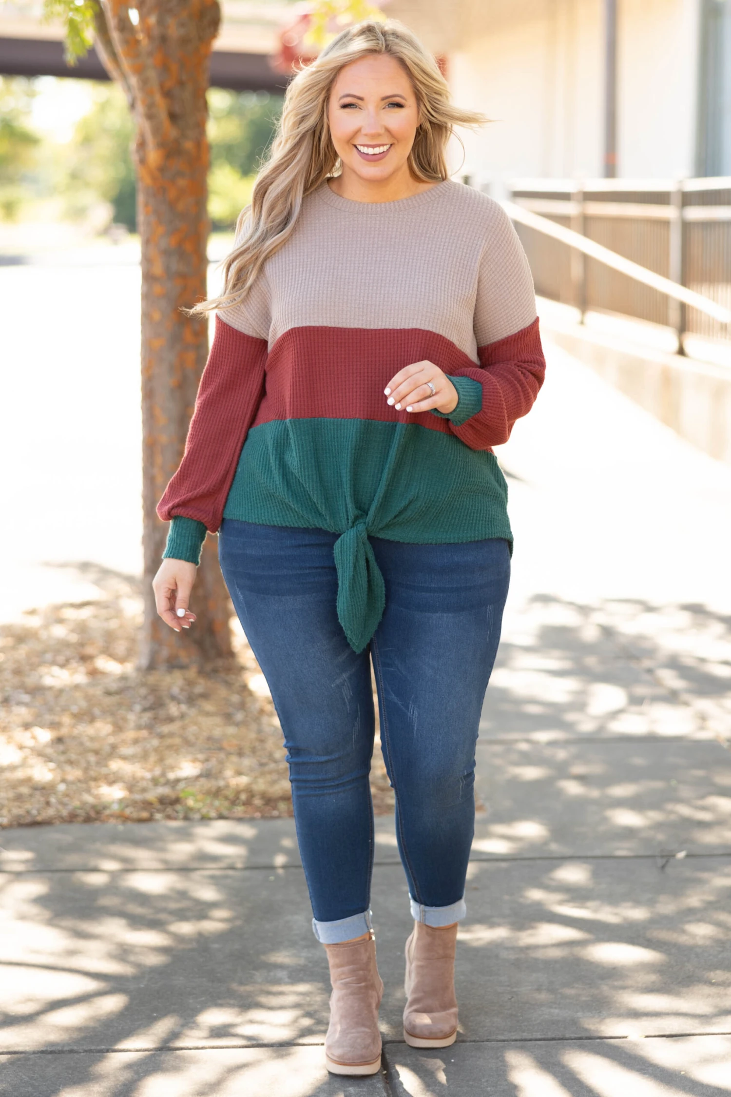 We are IN LOVE with this adorable sweater! This sweater is just too good to be true! It has a cool colorblock design and the coziest fabric. Plus, the tie detail is so trendy! It’s great for chilly days and nights! Toss it on with some skinnies and booties to complete the chic look!