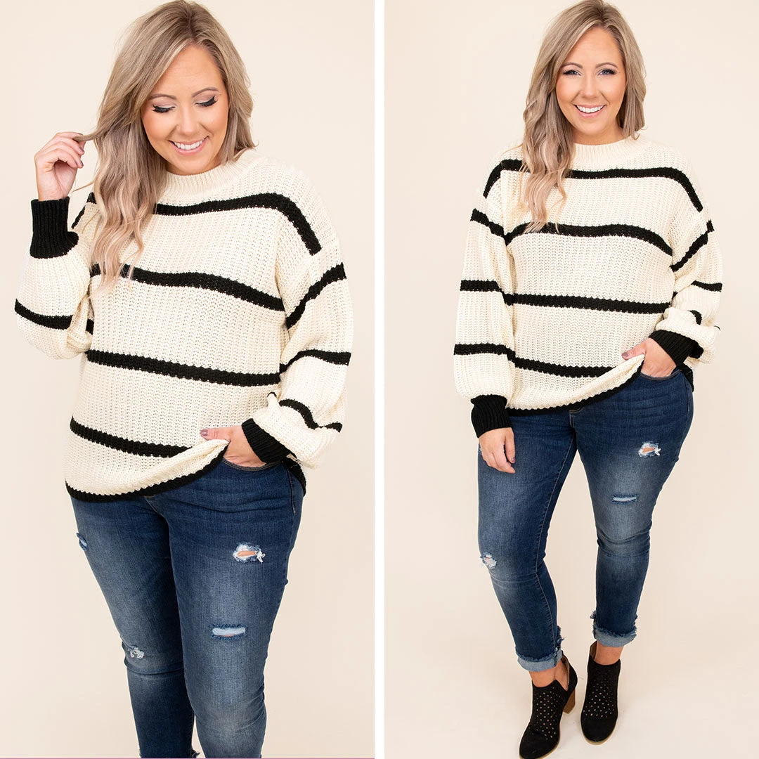 You better get this chic sweater while you can because once it’s gone, we hope it will be back soon! This sweater has a gorgeous stripe pattern with the perfect warm colors for the season! Speaking of warm, this sweater will keep you warm and cozy all season long! It’s comfortable, figure-flattering, and easy to style with your favorite shoes and accessories! Simply, pair this sweater with a solid top or dress for an effortlessly chic look!Â