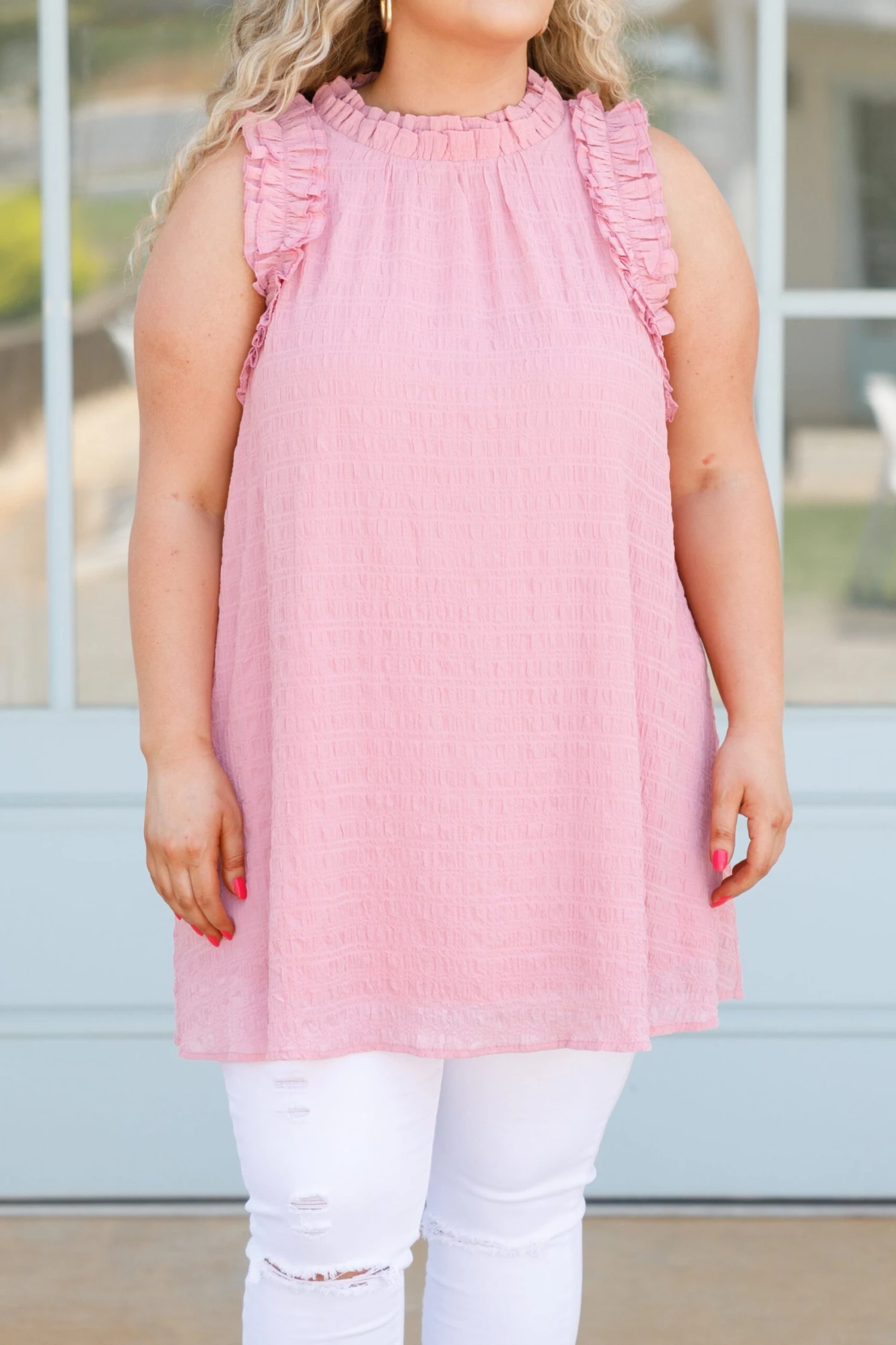 Shine bright like a diamond in this adorable top! This top is perfect for a casual day out! With its flowy fit and ruffles along the neckline and sleeves, you’ll enjoy a flattering, comfortable style! The pretty pink color will bring a bright, happy vibe to any look!