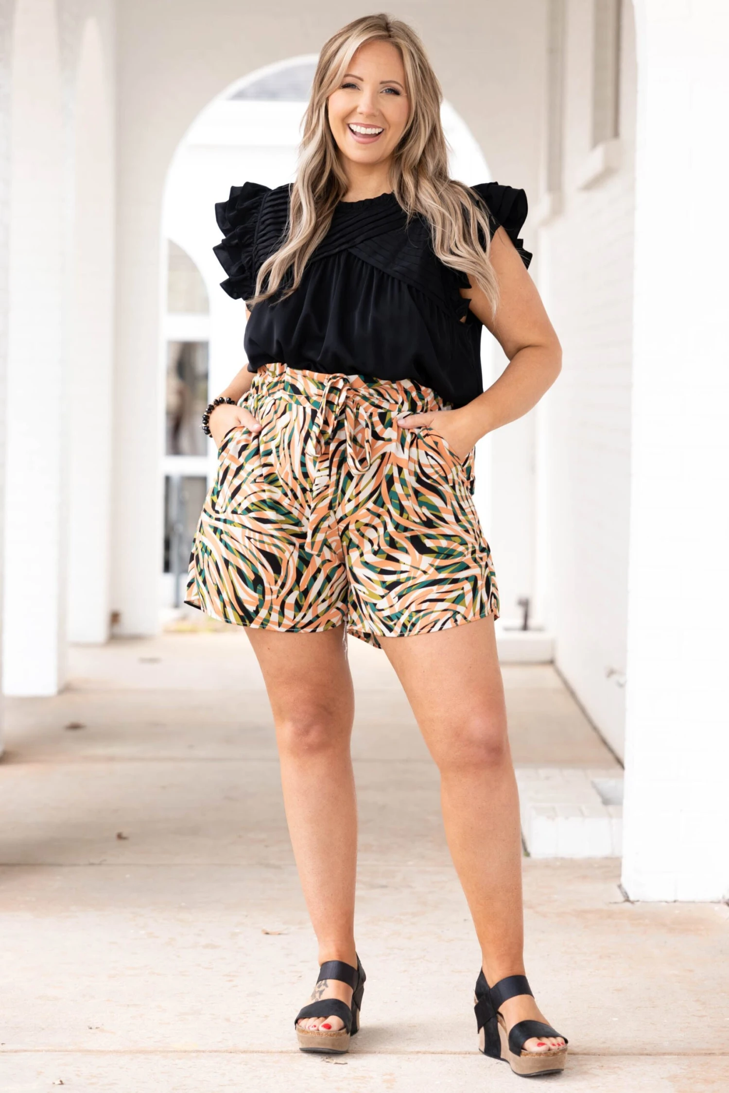 These gorgeous shorts will leave you speechless! The bold colors and patterned style are so chic! The waist tie and figure flattering fit are just what you need for your next night out! Pair these shorts with a sassy blouse and wedges for the ultimate chic look!