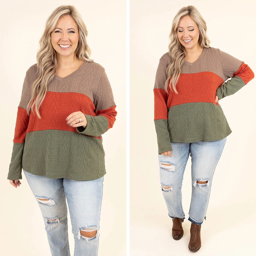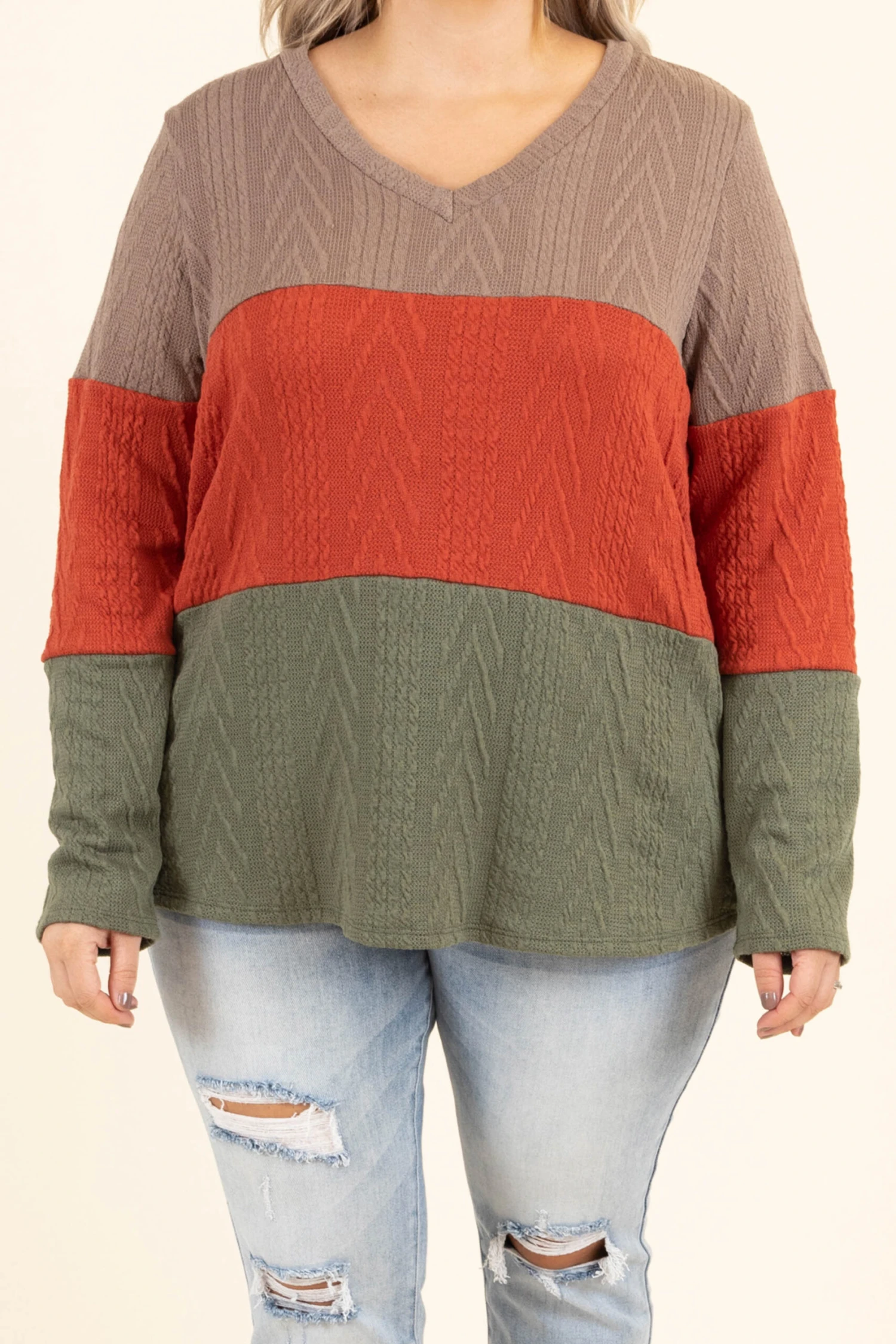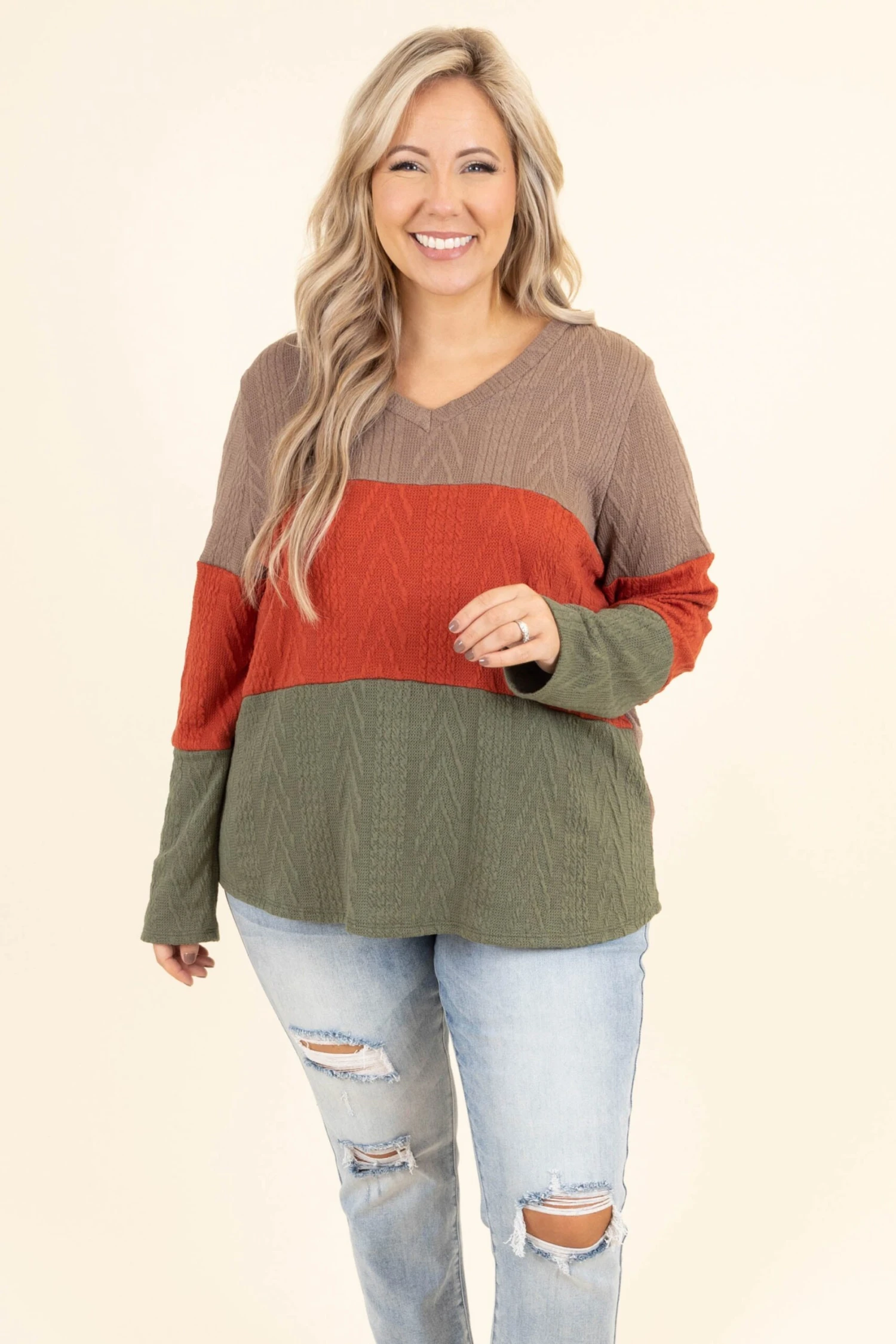 Every day can be a chill day in this adorable top! This top has a beautiful mocha color and a colorblock design that is perfect for the season! The stretchy material is great for all day wear! Style this top with some skinnies and booties for a classic, chic look!