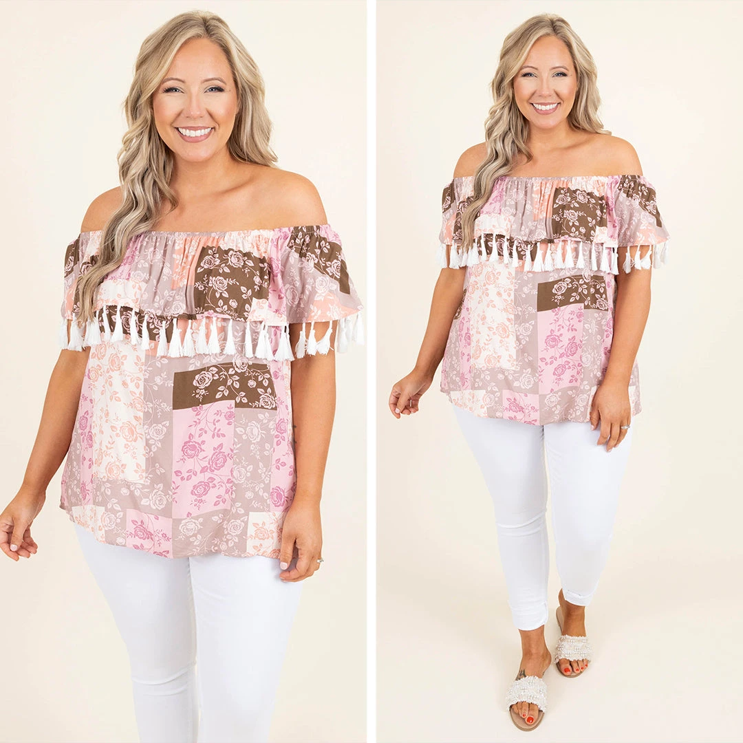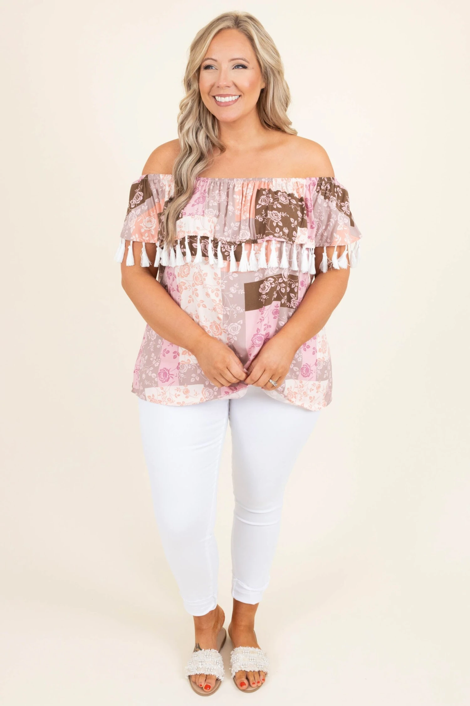 This top will have you looking as sweet as a chocolate strawberry! The mocha and blush colors are so sweet and the off the shoulder look is super trendy! We are obsessing over the tassels that give this cutie some extra flair! Style it with some white skinnies and sandals for a look that will impress everyone!Â