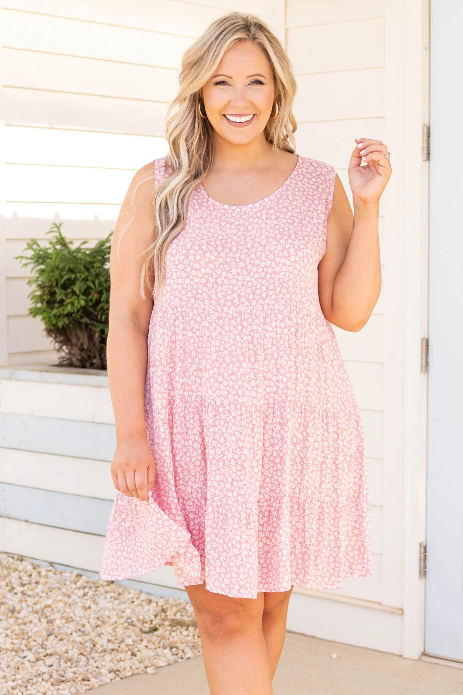 Show off your curves in this dress! The pink color is so cute with the floral pattern that will have you looking like a queen! The babydoll style will flatter your figure and the tank style is so comfy! Style this with some wedges for a chic dressier look!