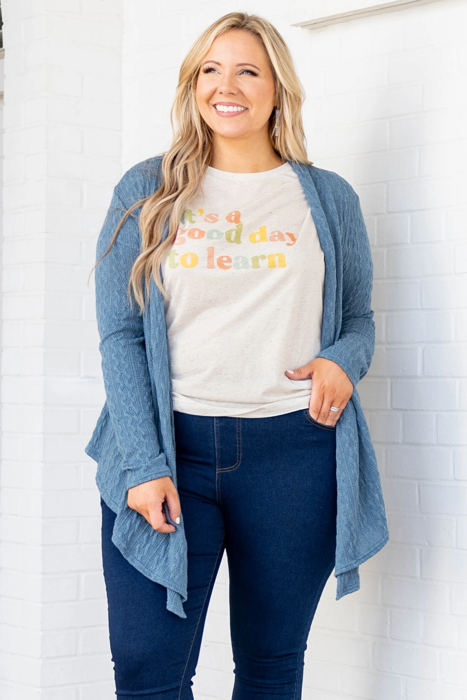 Bring out your classy with this cardigan! The soft neutral color can match everything, and the cable knit pattern is so cute! This babe is sure to keep you cozy, simply style it with a cute graphic tee and some skinnies and you have a chic everyday look!