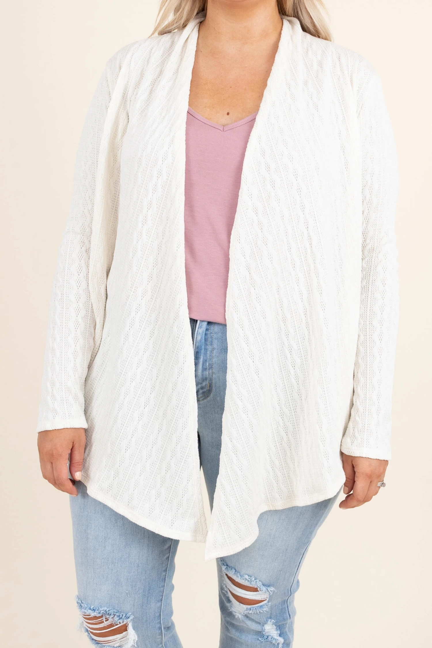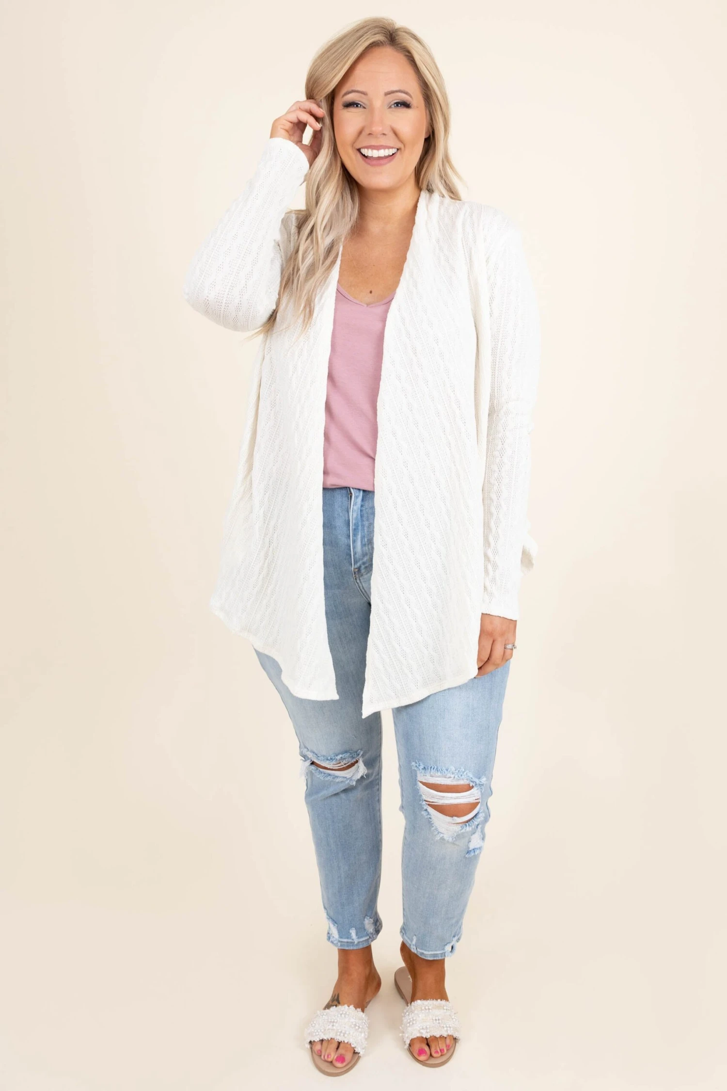 Bring out your classy with this cardigan! The white color can match everything, and the cable knit pattern is so cute! This babe is sure to keep you cozy, simply style it with a basic tank and some skinnies and you have a chic everyday look!