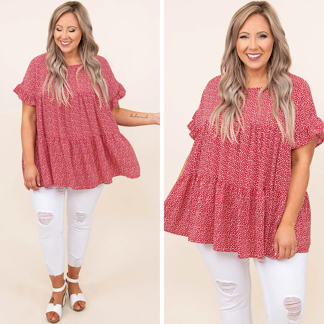 Grabbing coffee with the girls? This top is perfect! This top has a trendy polka dot pattern with colors that are perfect for the season! It’s comfortable for all-day wear, has a flowy fit, and features the cutest baby doll design! Style this top with skinnies and wedges for an effortlessly chic look!Â