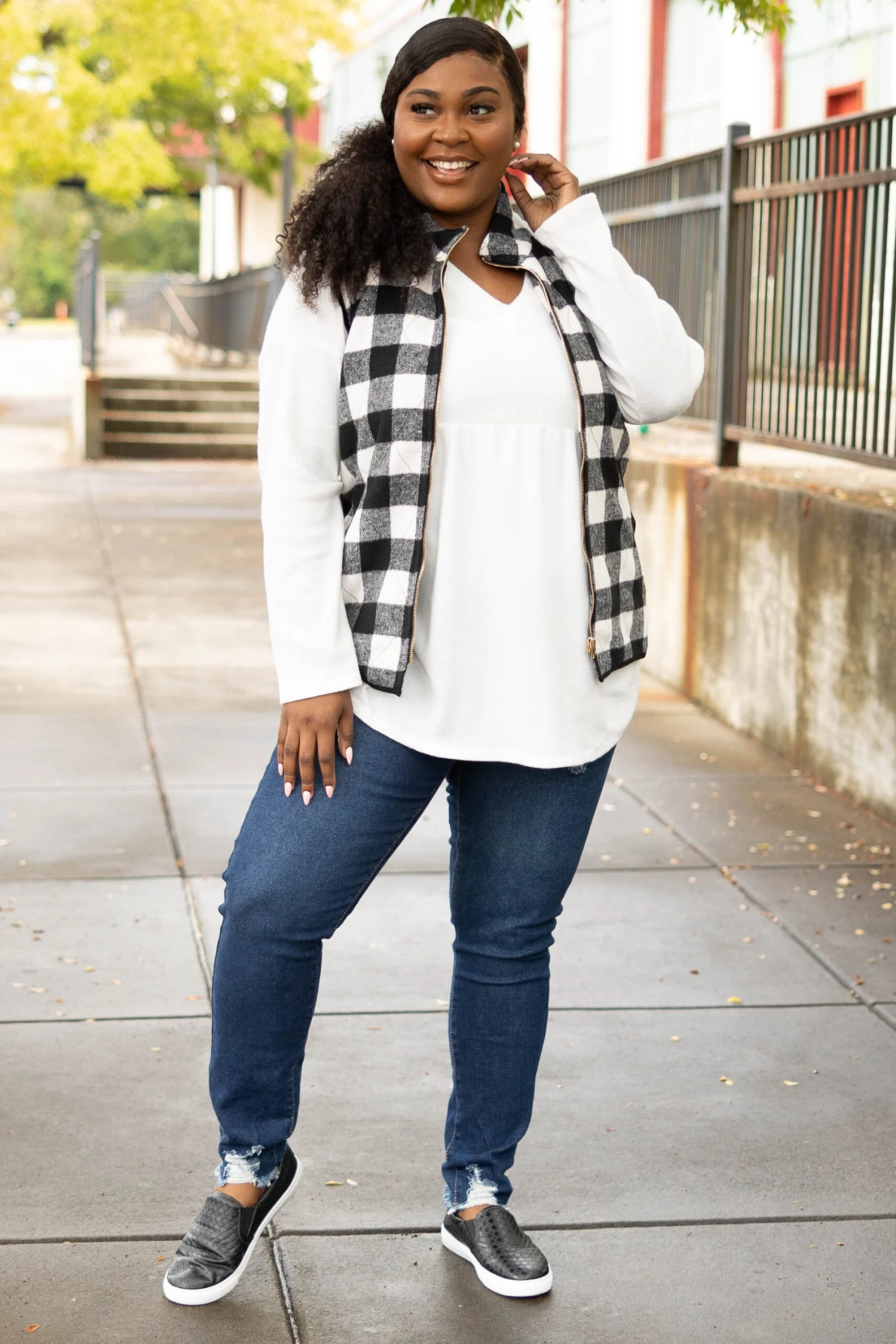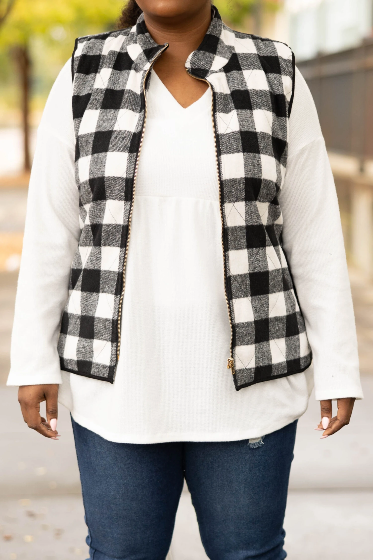 It’s almost that time of year! Grab this vest today to be prepared! It has a classic plaid pattern with bold ivory and black color combo you can dress up or down for every occasion! It’s comfortable for all-day wear can be styled with your favorite tops, and features a thick fabric for the ultimate cozy feel! Pair this vest with a solid top or dress for an easy everyday look!Â