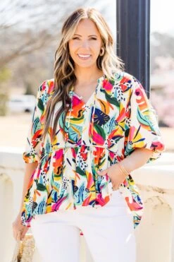 Let your true colors shine in this fabulous dress! It features flutter sleeves for a playful and feminine look! The bold mint color and vibrant floral pattern add a touch of fun and a flirty length completes the look! Bring out your colorful side with this dress!