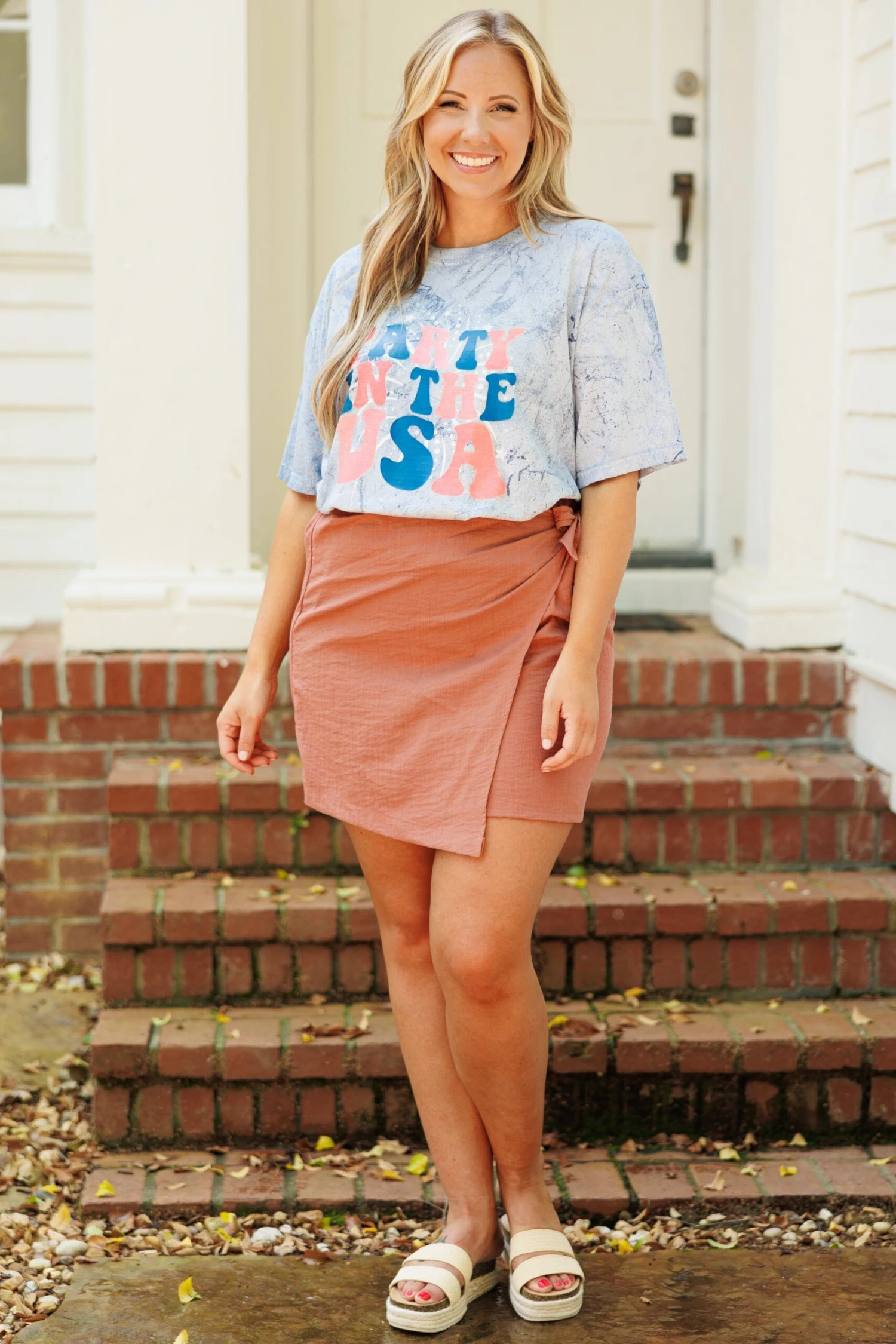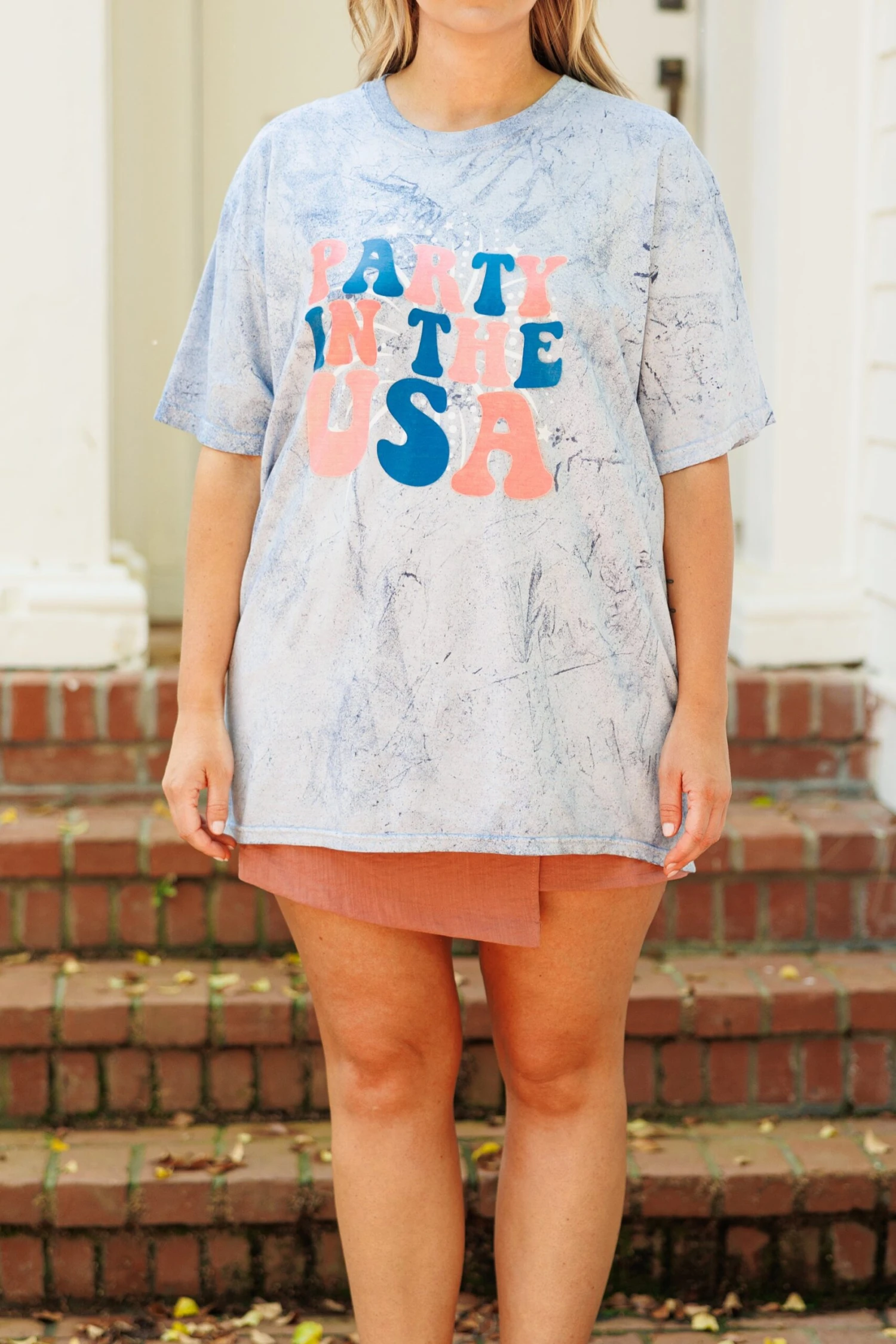 Bring your summer style to life with this trendy tee! Featuring a unique acid wash, you’ll love the modern look and feel! The comfy fabric makes it ideal for any occasion – from casual beach days to Fourth of July barbecues!