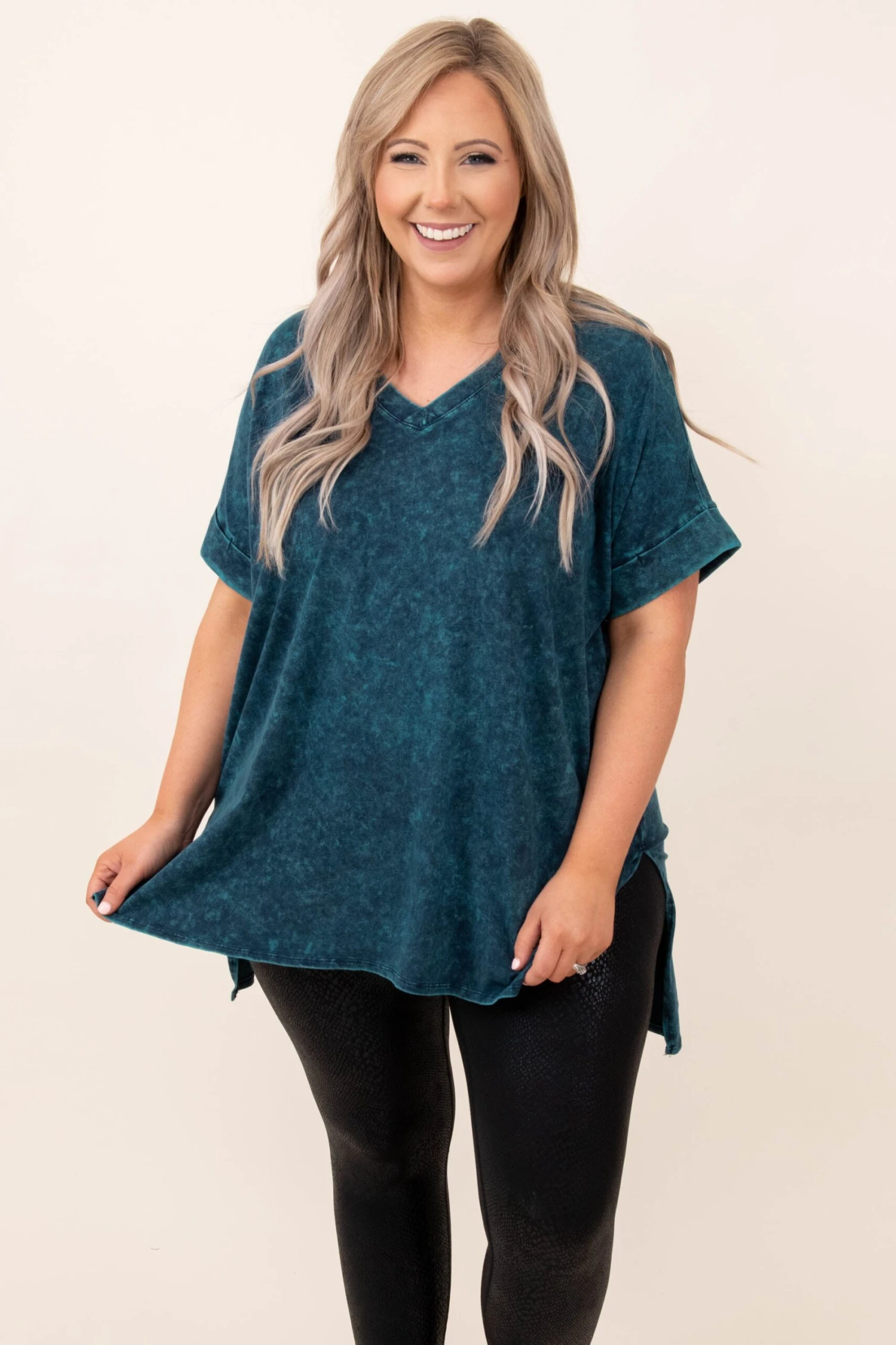 Travel comfortably in this cute top! It’s a trendy mineral wash top that is a closet staple! It has a relaxed fit and super soft fabric that will keep you comfy from day to night! Throw it on with leggings or skinnies and sneakers for your next adventure!