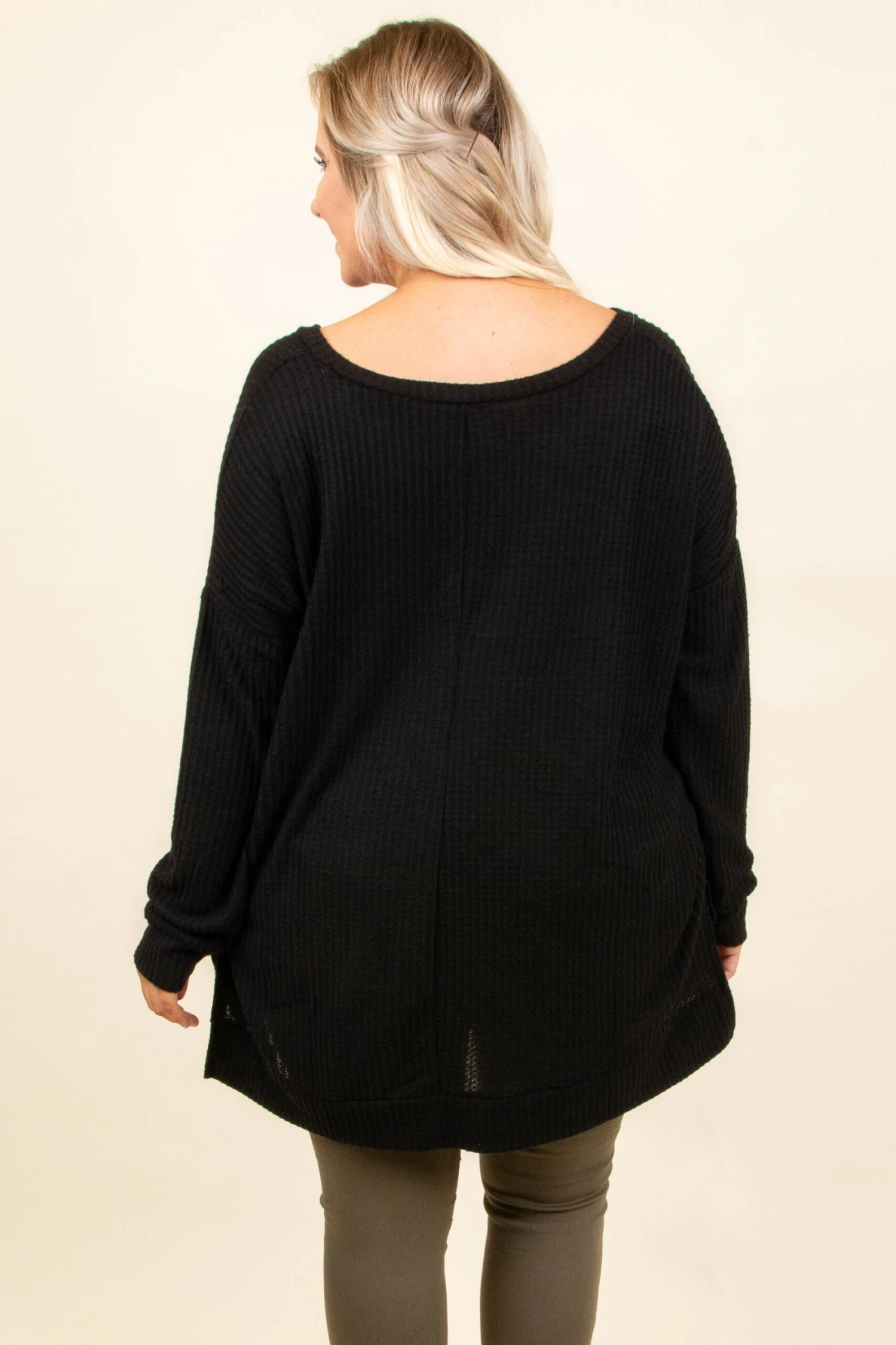 Cool days are coming, get ready with this comfy tunic! It has a super relaxed, oversized fit and a dreamy soft, ribbed fabric! We love the classic black color and how easy it is to wear casual or dressed up! Pair it with leggings and sneakers for a chill day or dress it up with a statement necklace and skinnies for a night out!