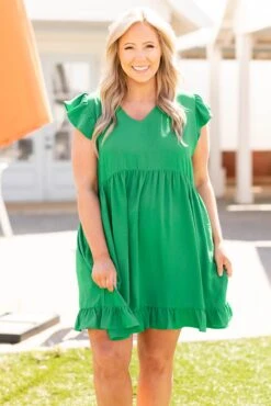 This dress is so cozy while keeping you looking so chic! This dress has a solid kelly green color that’s perfect for the season! It’s comfortable for all-day wear, has a figure-flattering fit, and features the cutest ruffled details! Simply, style this dress with wedges or sandals for an easy everyday look!Â