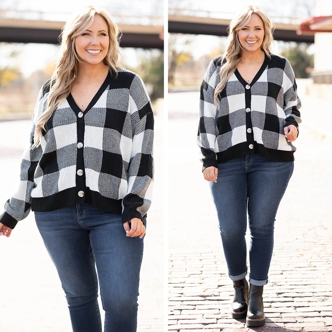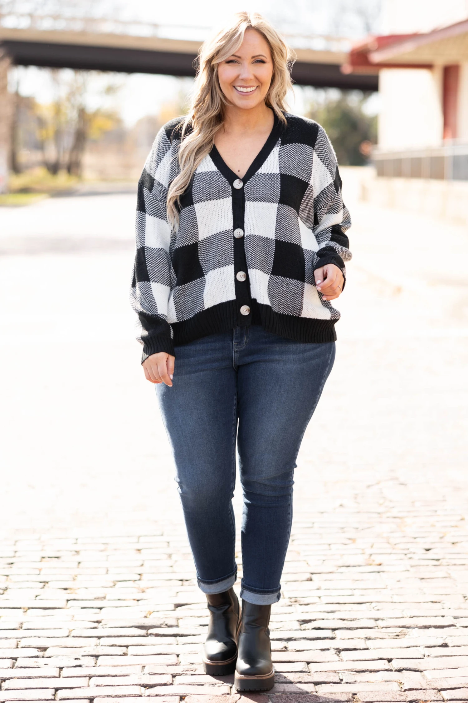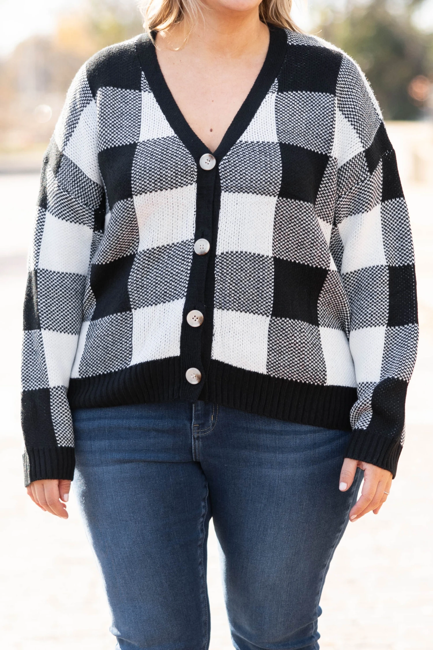 Create some cozy memories in this gorgeous cardigan! It has a neutral black-white color and a knitted design that is so comfy and great for layering over all of your fave outfits all season long! Style this cardigan over a solid top and skinnies for a classic chic look!