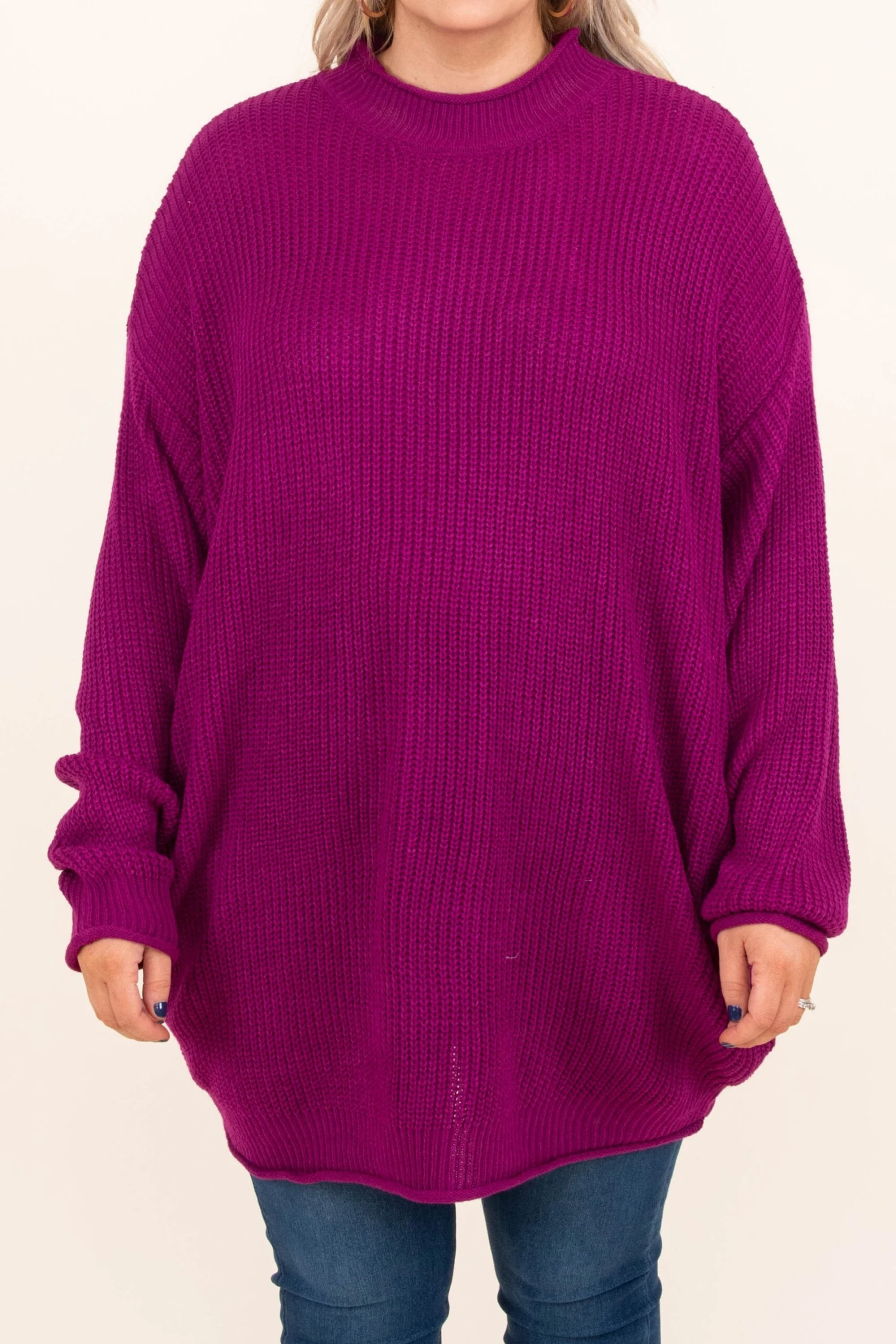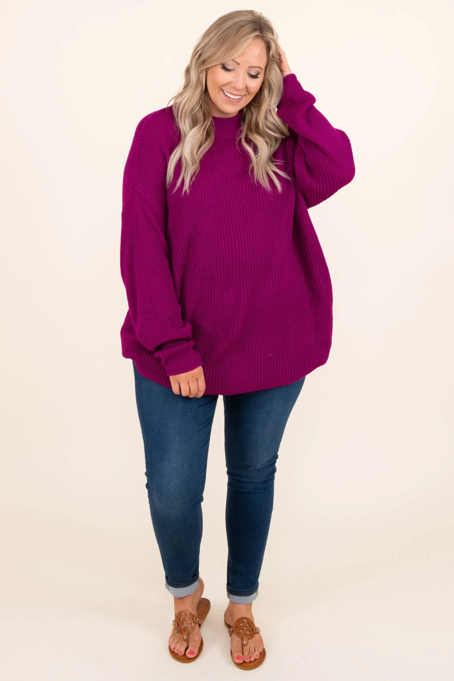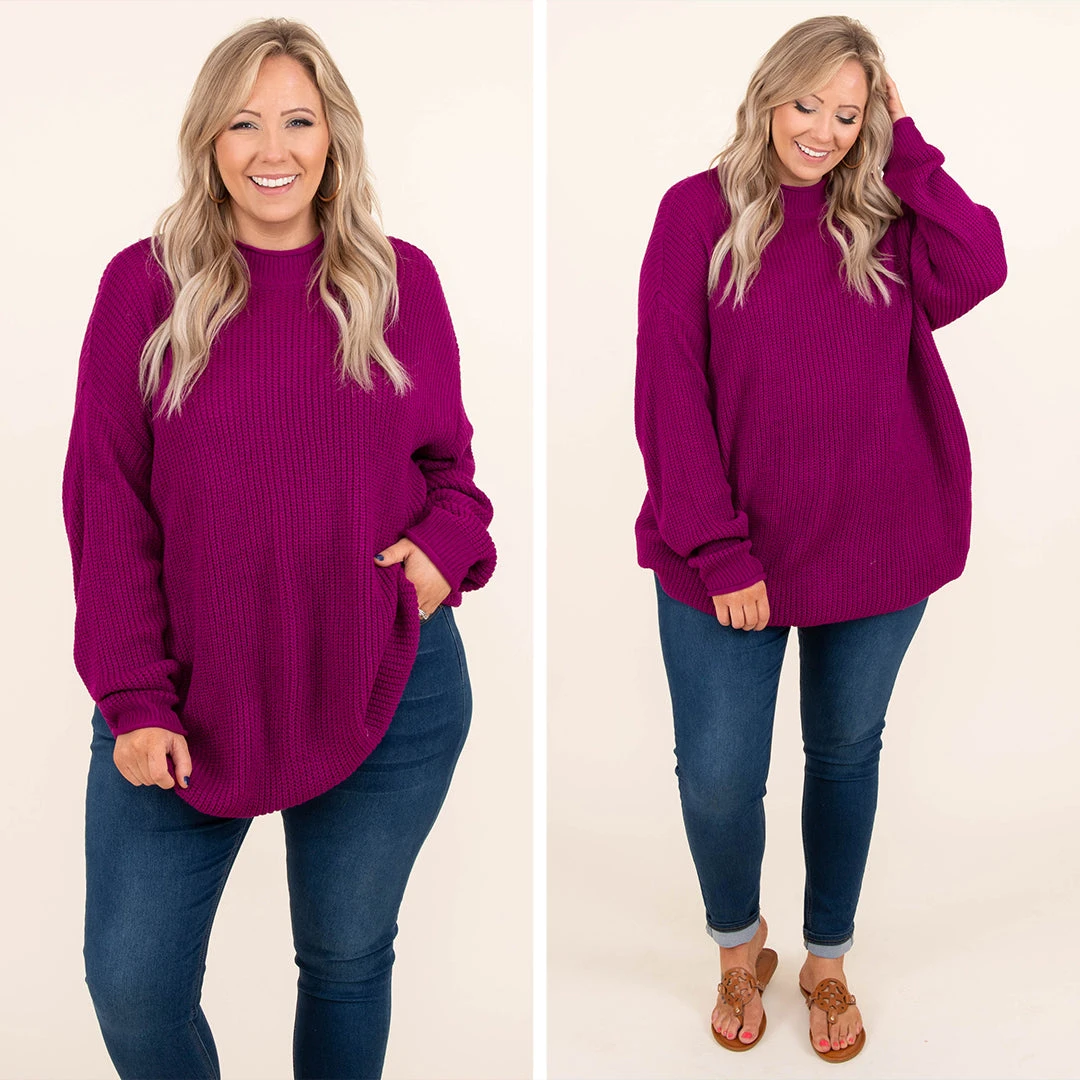 This sweater is absolutely made for cuddling close! The bold magenta color is so fun and the oversized look is so trendy! Pair this with some skinnies and sandals for the perfect look this season!