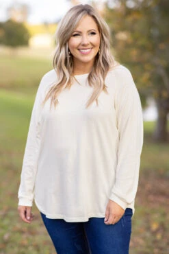 Our ALL NEW Slouchy is here!!! This gorgeous ivory tunic has a flattering CURVED hem, our signature dolman sleeves and long, loose fit! This tunic is going to be your new go-to piece for the fall and winter! It is seriously the softest material ever, and the neutral color makes it SO easy to style! Pair it with leggings, skinnies, booties, slides, a scarf, some fun accessories…seriously the opportunities are endless!!Â