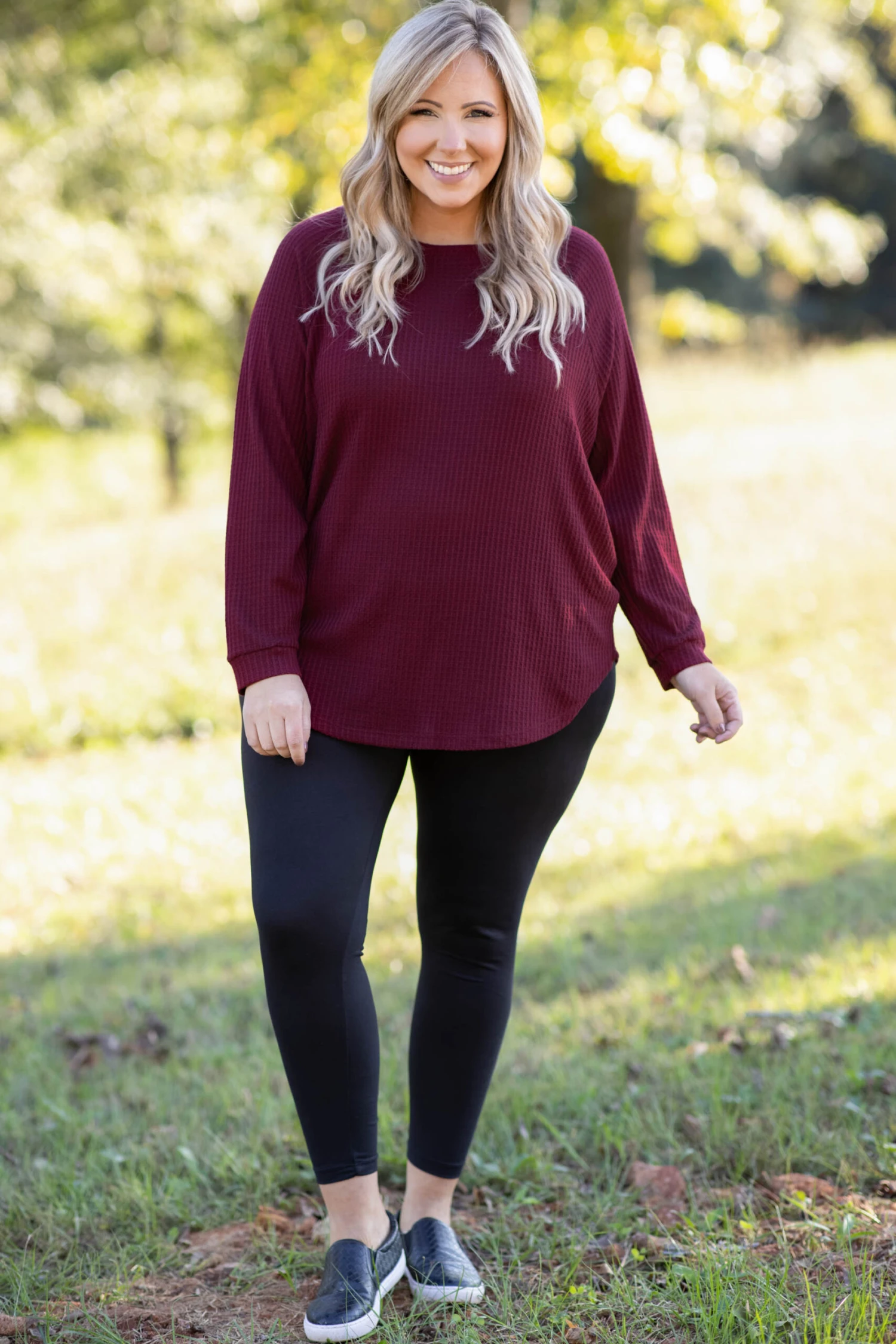 Your favorite tunic just got an upgrade! Introducing: The classic curved hem slouchy, now with a thermal fit and waffle weave fabric! This top remains just as comfortable and versatile but has an added touch of warmth for a piece you can wear all season long! The material is soft and cozy with a relaxed fit you can wear everywhere! Not to mention how easy it is to style! Pair our thermal slouchy with your favorite accessories, comfy leggings, or chic booties. This top is a MUST in your wardrobe!