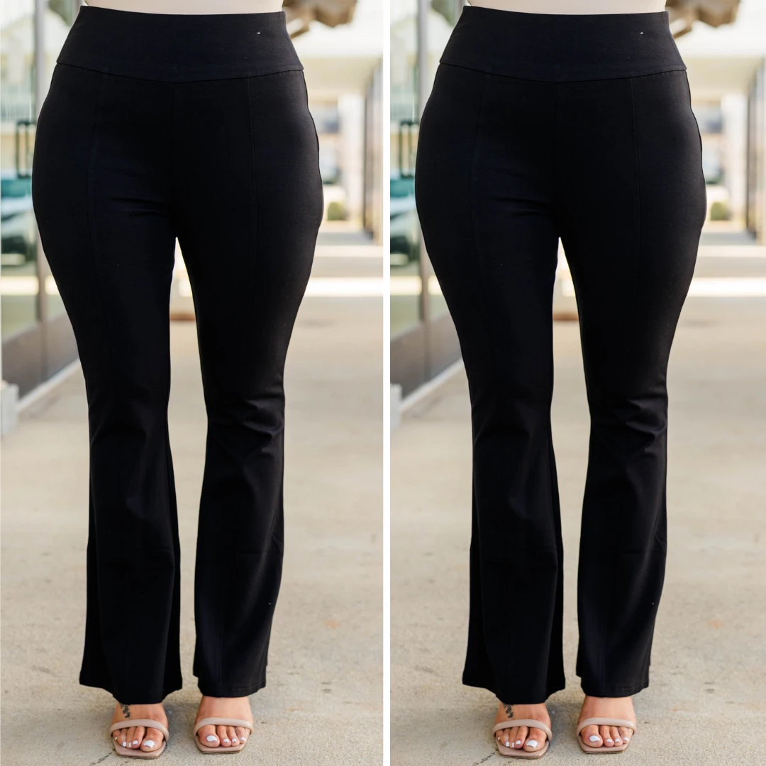 Dive deep into the season with these FAB pants! They were designed with a flare silhouette, style and versatility! Perfect for any occasion, these pants are the ideal choice for a day in the office or a night out on the town! Elevate your wardrobe with a touch of sophistication!