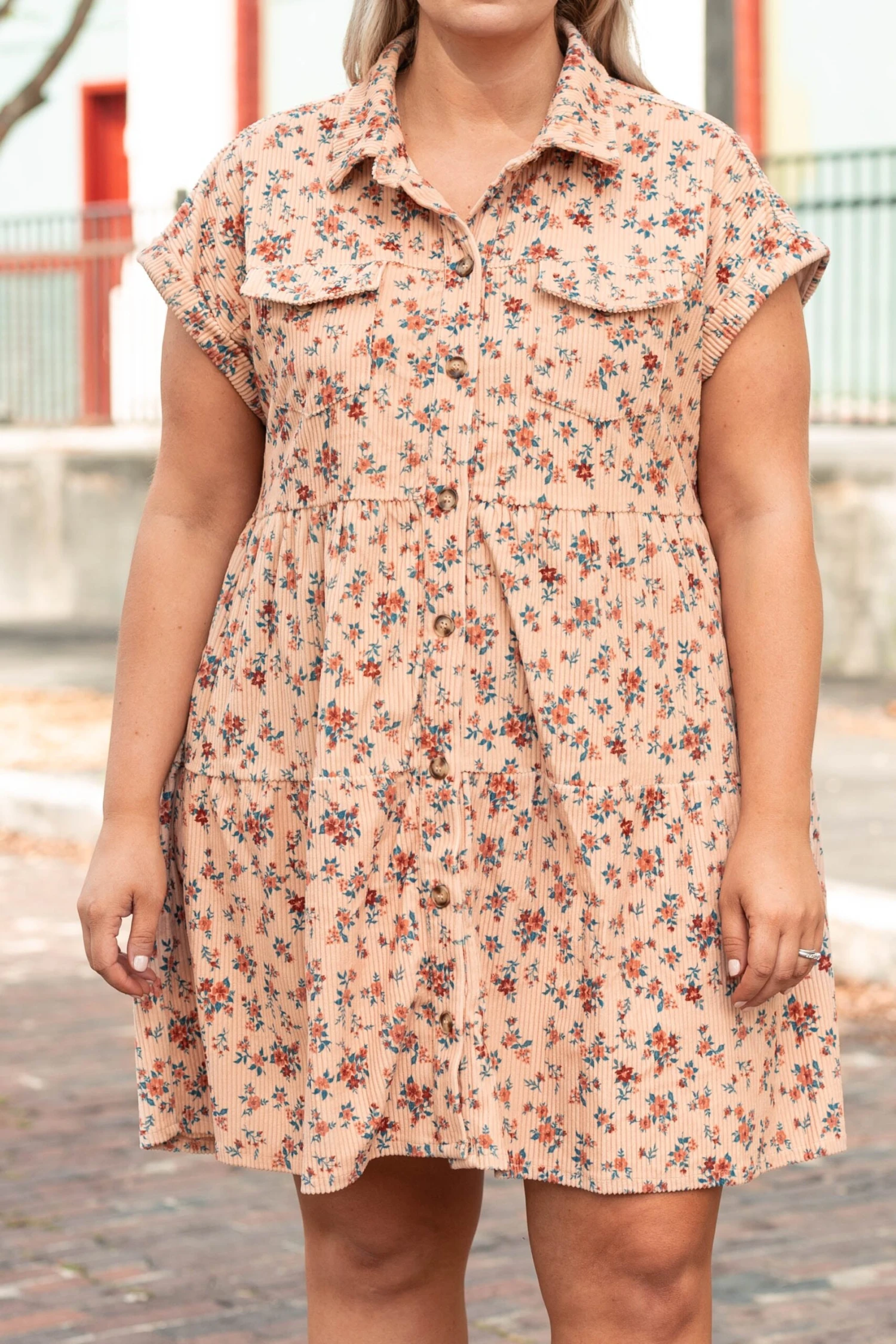 This dress is what dreams are made of! This dress has a lovely, soft beige color and a trendy floral pattern that is just in time for the season! The ribbed texture, stretchy fit, and cozy feel is perfect for all day wear! Pair this dress with some booties and cute accessories for a classic, chic look!Â