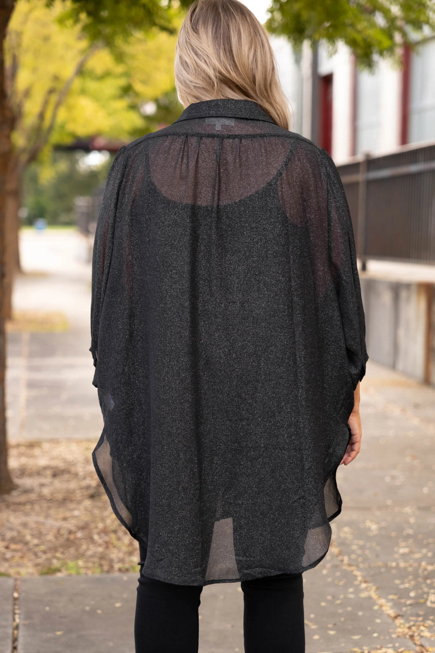 This is the top you have been dreaming of! It features a classic black glitter fabric! It’s comfortable for all-day wear, has an oversized flattering fit, and features the perfect length to pair with all of your jeans and jeggings! Not to mention the chic medium wash we love! Pair this jacket with a basic top or graphic tee for an effortlessly trendy look!