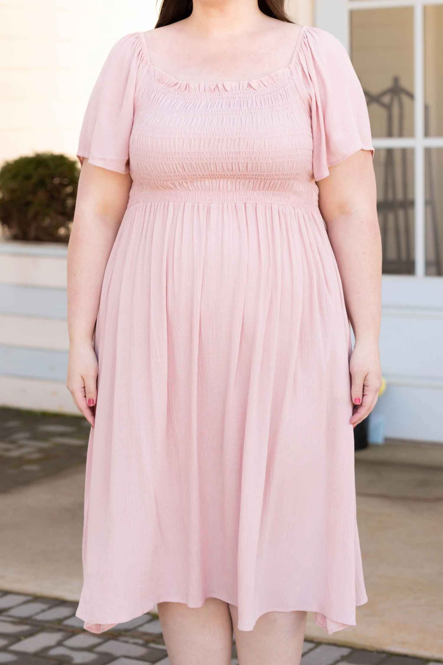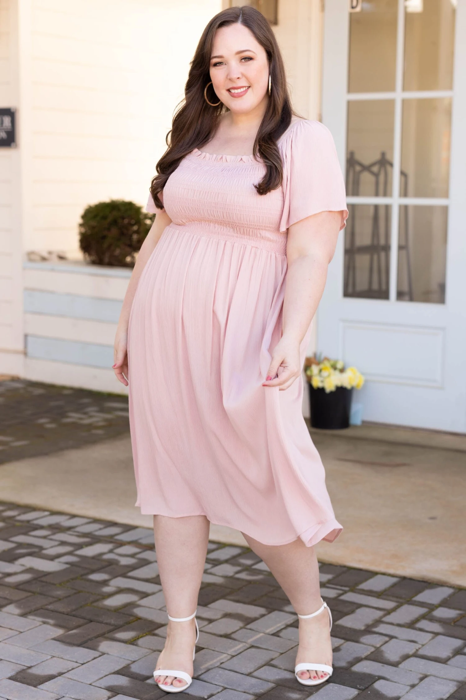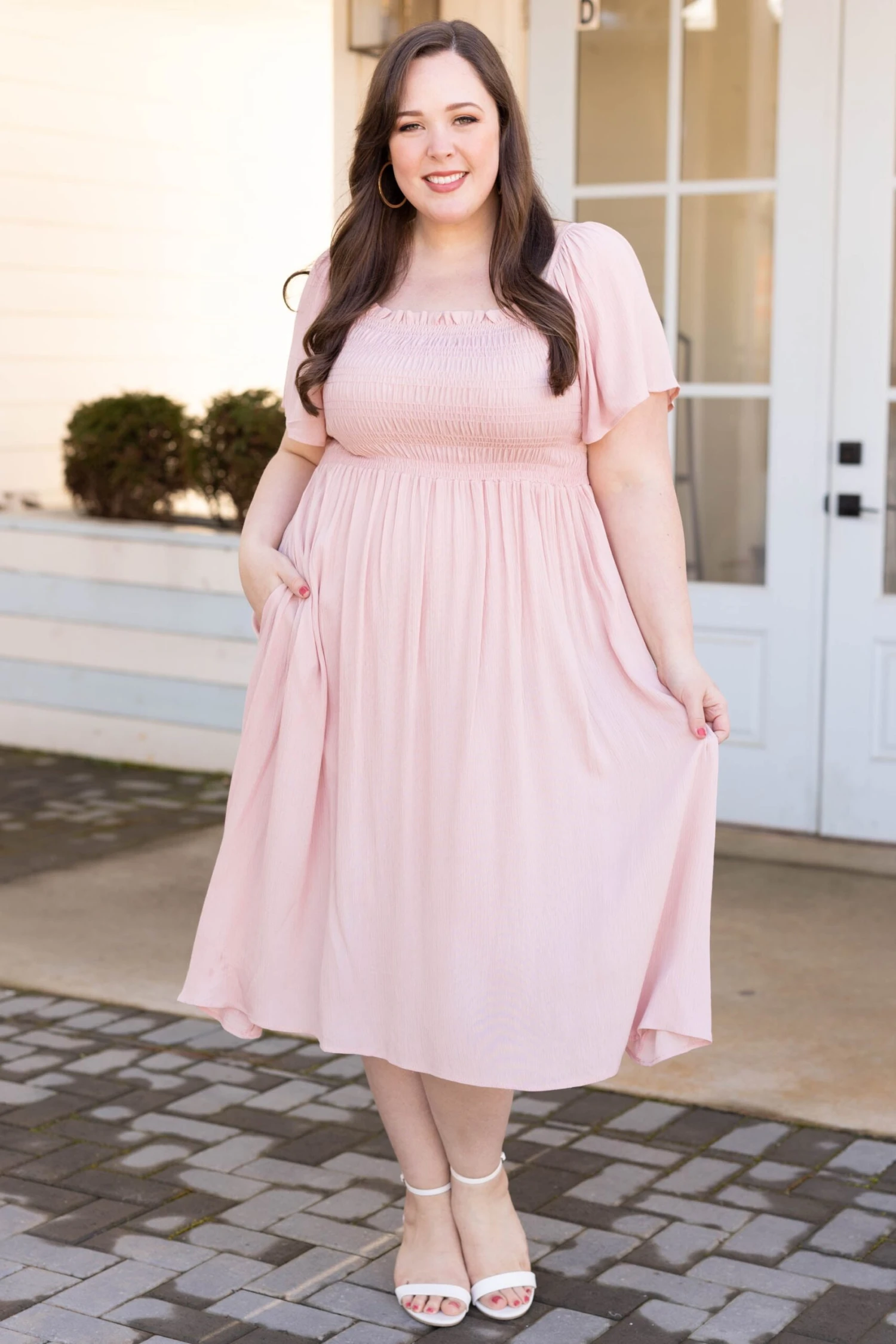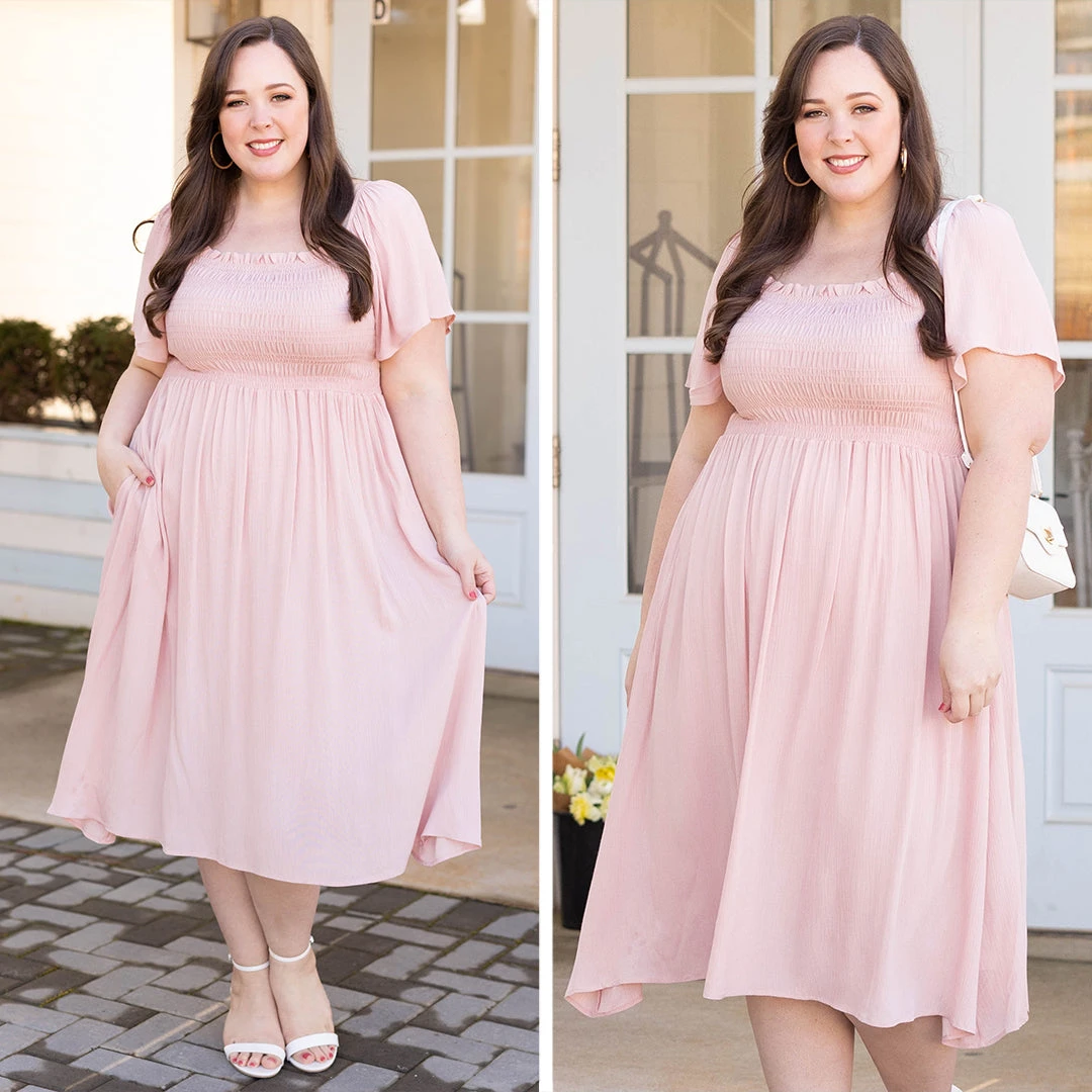 It’s easy to love this dress! The solid mauve color is absolutely darling and the crepe textured fabric is super unique! The smocked bodice will have you supported in all the best areas and the flowy skirt is so comfy! Style this babe with some white heels and a cute purse to look like a million dollars!