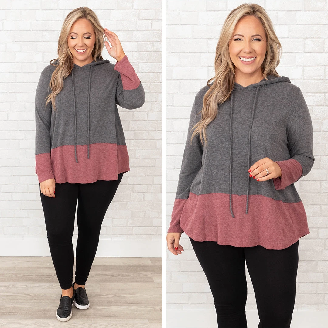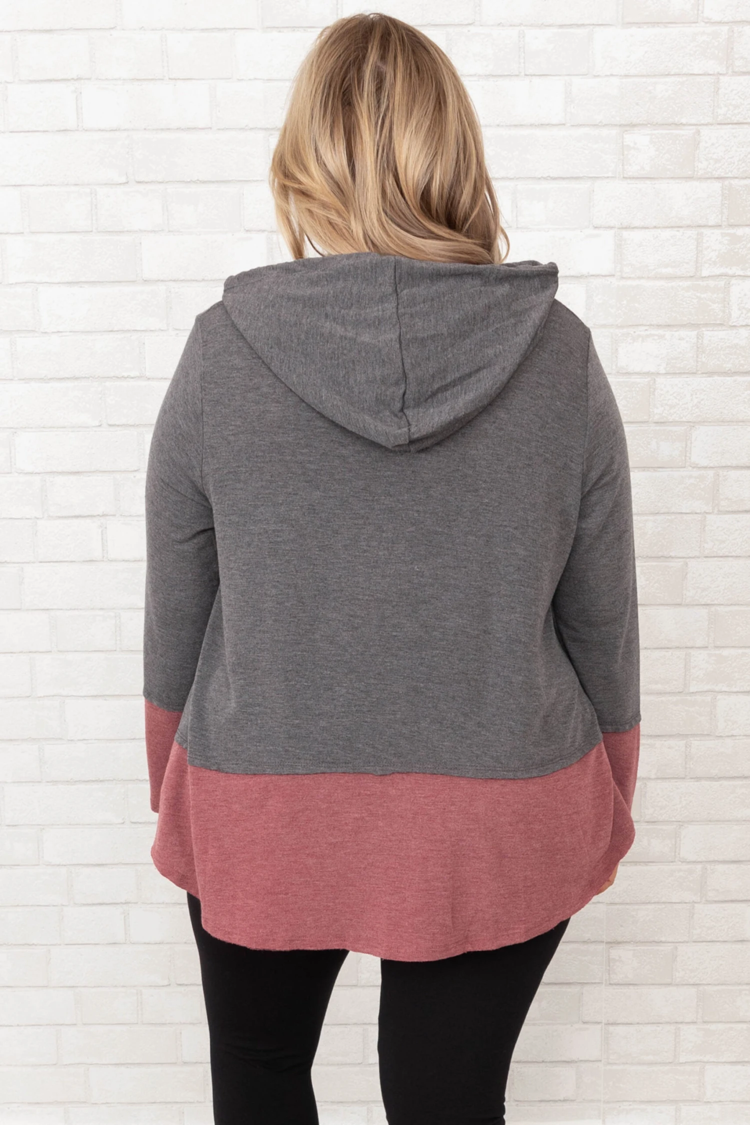 This hoodie is definitely a necessity! This hoodie has a charcoal color and lightweight feel that is perfect for your new favorite layering piece! The stretchy, figure flattering fit is just in time for the season!