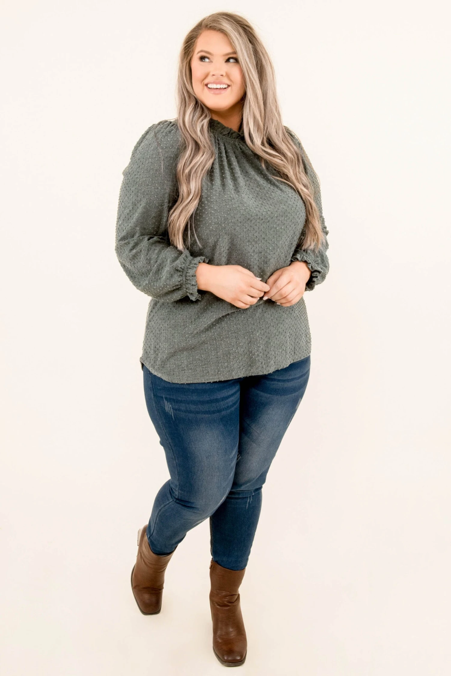 This top will change your wardrobe for the better! It has a chic olive color with the prettiest swiss dot fabric for a look you can wear everywhere! It’s soft, sweet, and has cute ruffles on the neckline and sleeves! Style this top with jeans and booties for an effortlessly beautiful outfit!