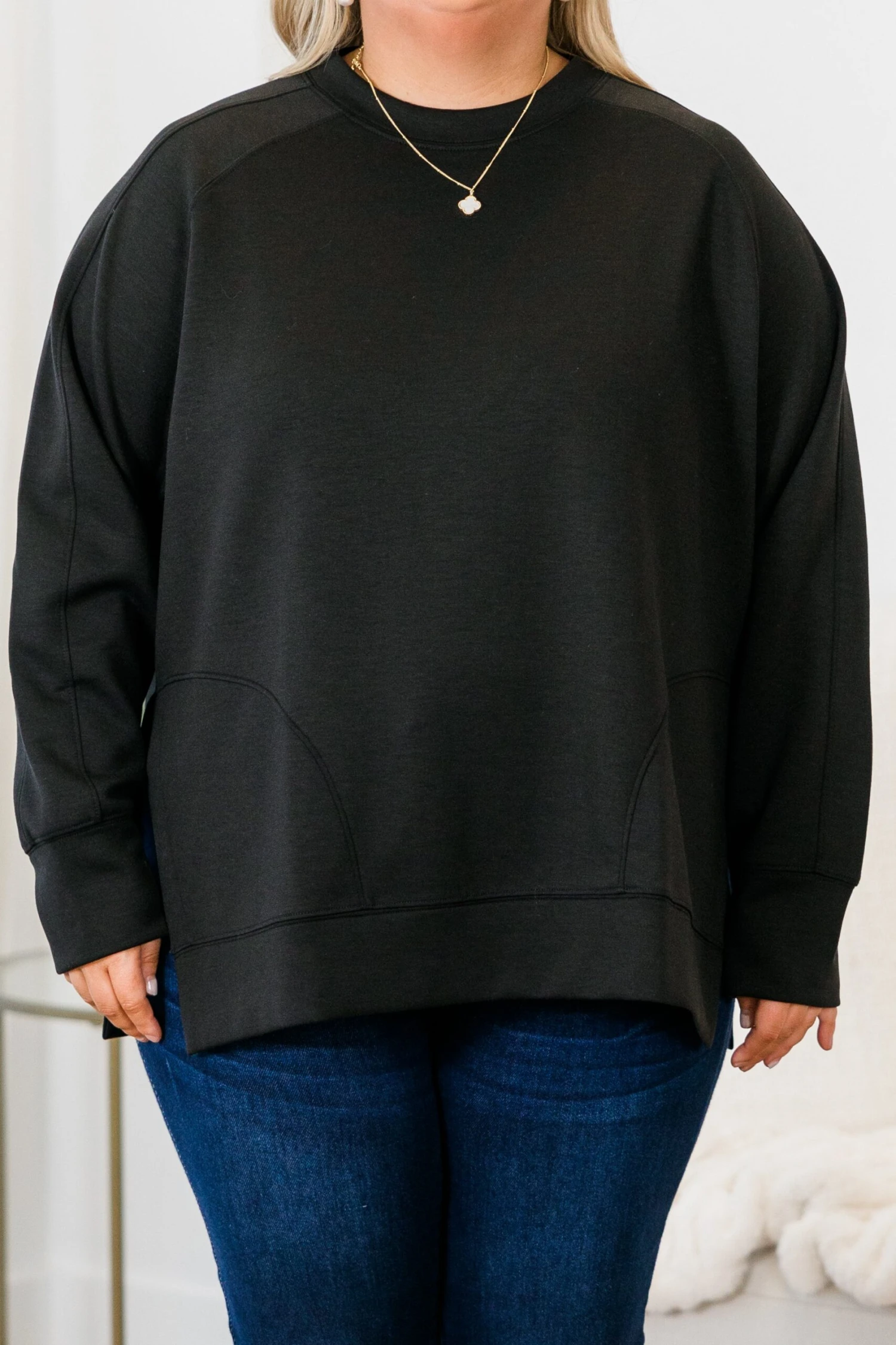 Get ready to cozy up in this pullover! Made from ultra-soft modal, this relaxed fit top features a round neck, side slits, and long sleeves! Perfect for lounging or layering, this black pullover will have you feeling sweet and stylish!