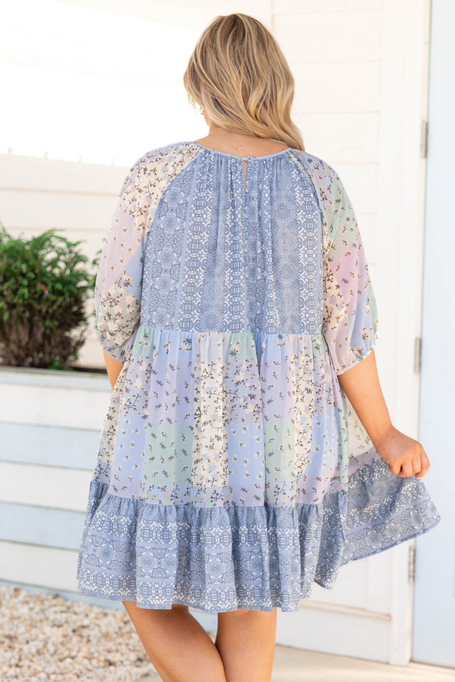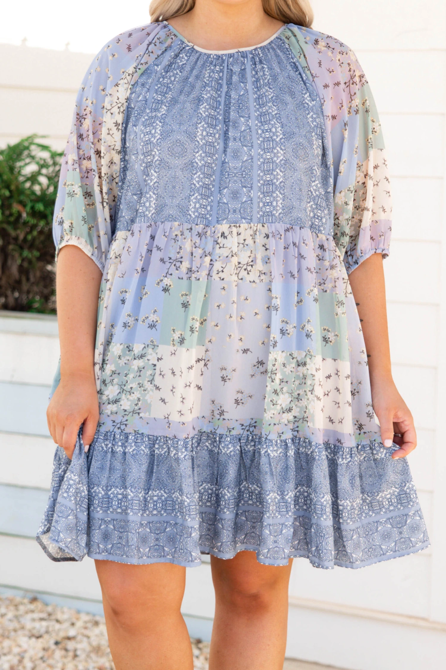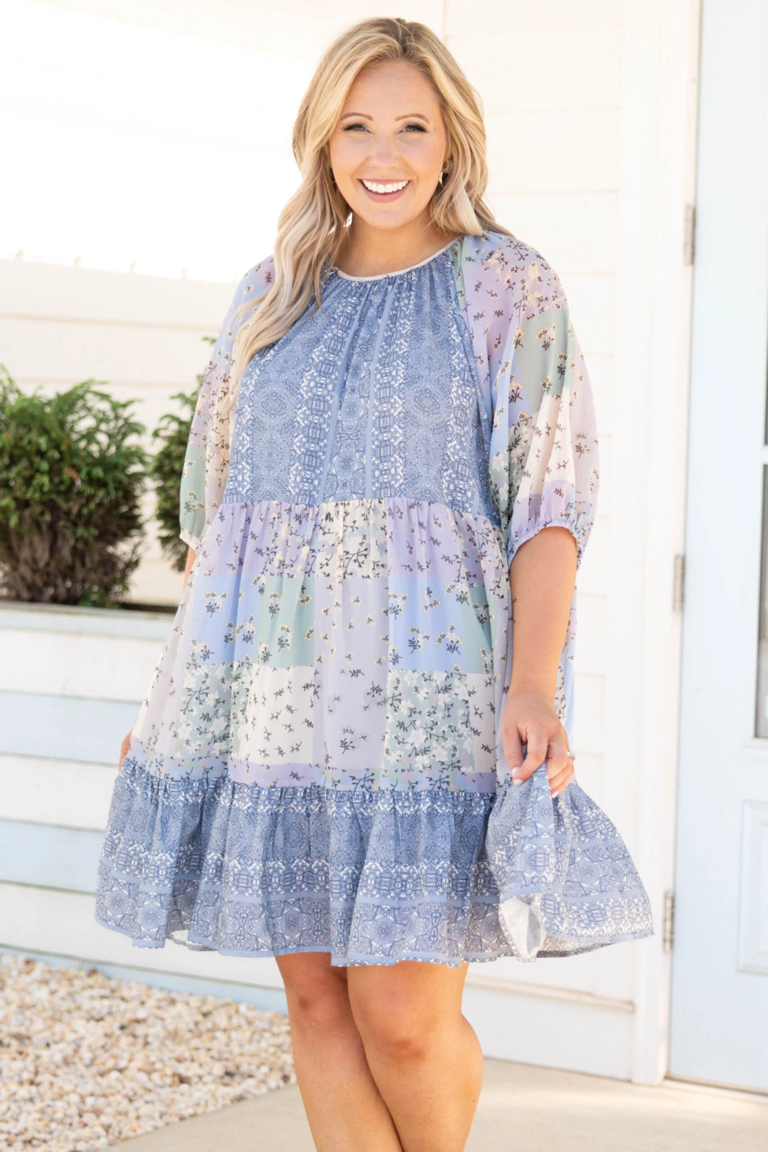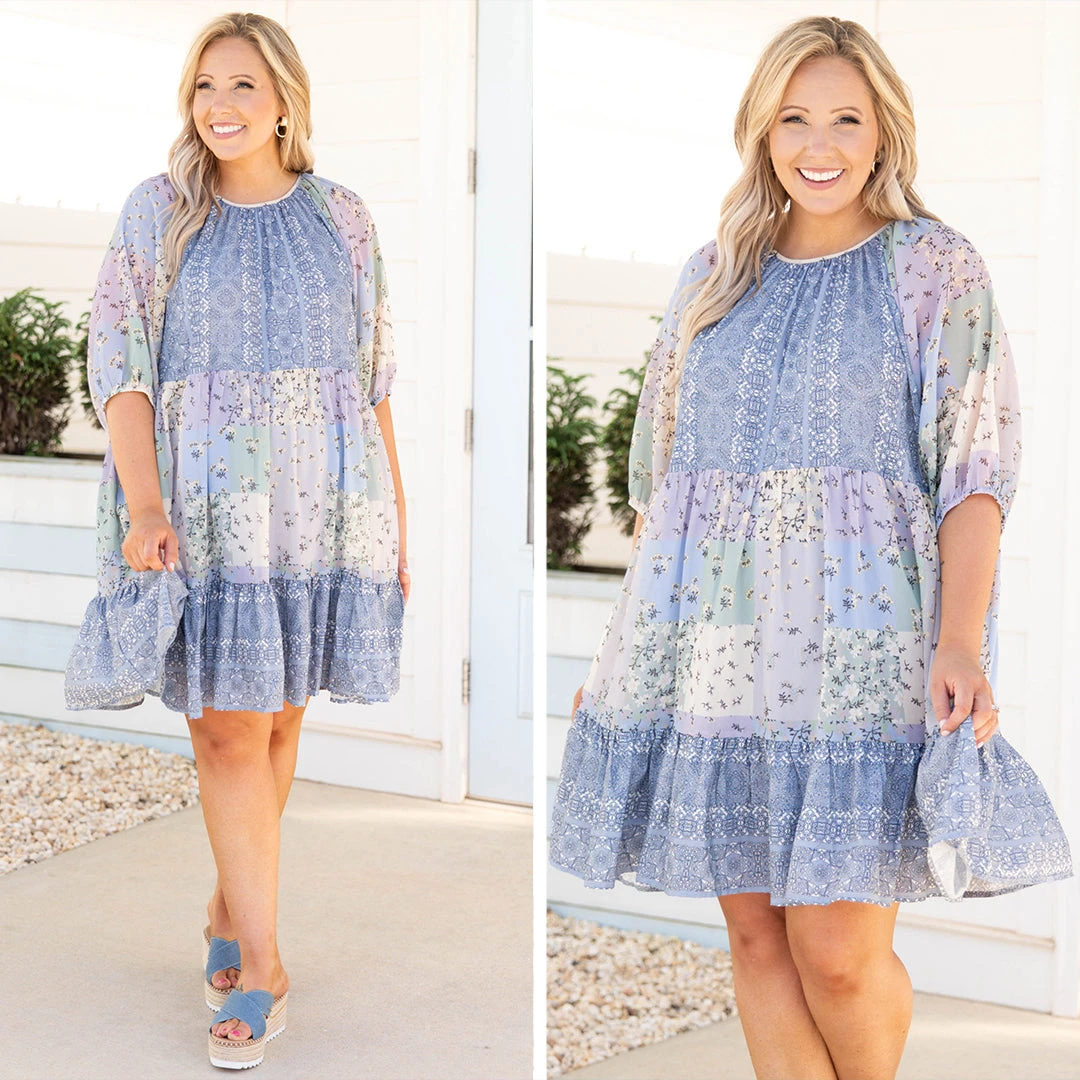This dress fills us with love! The color block floral pattern is so cute and the flouncy style is so fun and feminine! We love the puff quarter length sleeves that are so trendy and the babydoll style is so flattering! Style this with some sandals or wedges for a chic look!