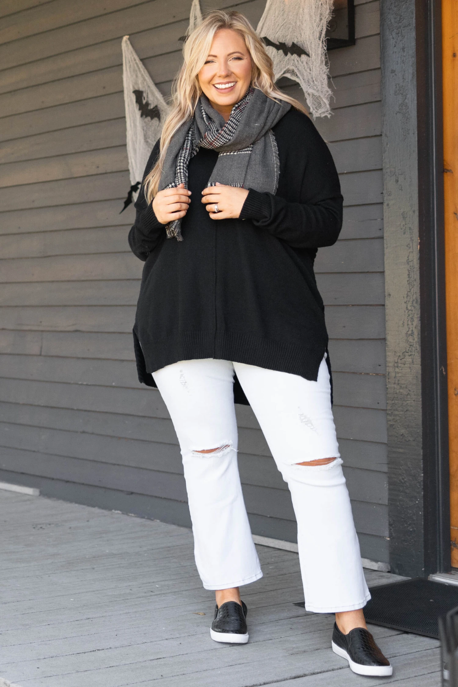 Enjoy the fireside in this gorgeous scarf! Whether is a date night by the bonfire or making smores with the family this scarf is the perfect layering piece this season! It has a charcoal color with a houndstooth pattern that is so sweet! Style this scarf with a cute top and white denim for a cozy chic look!