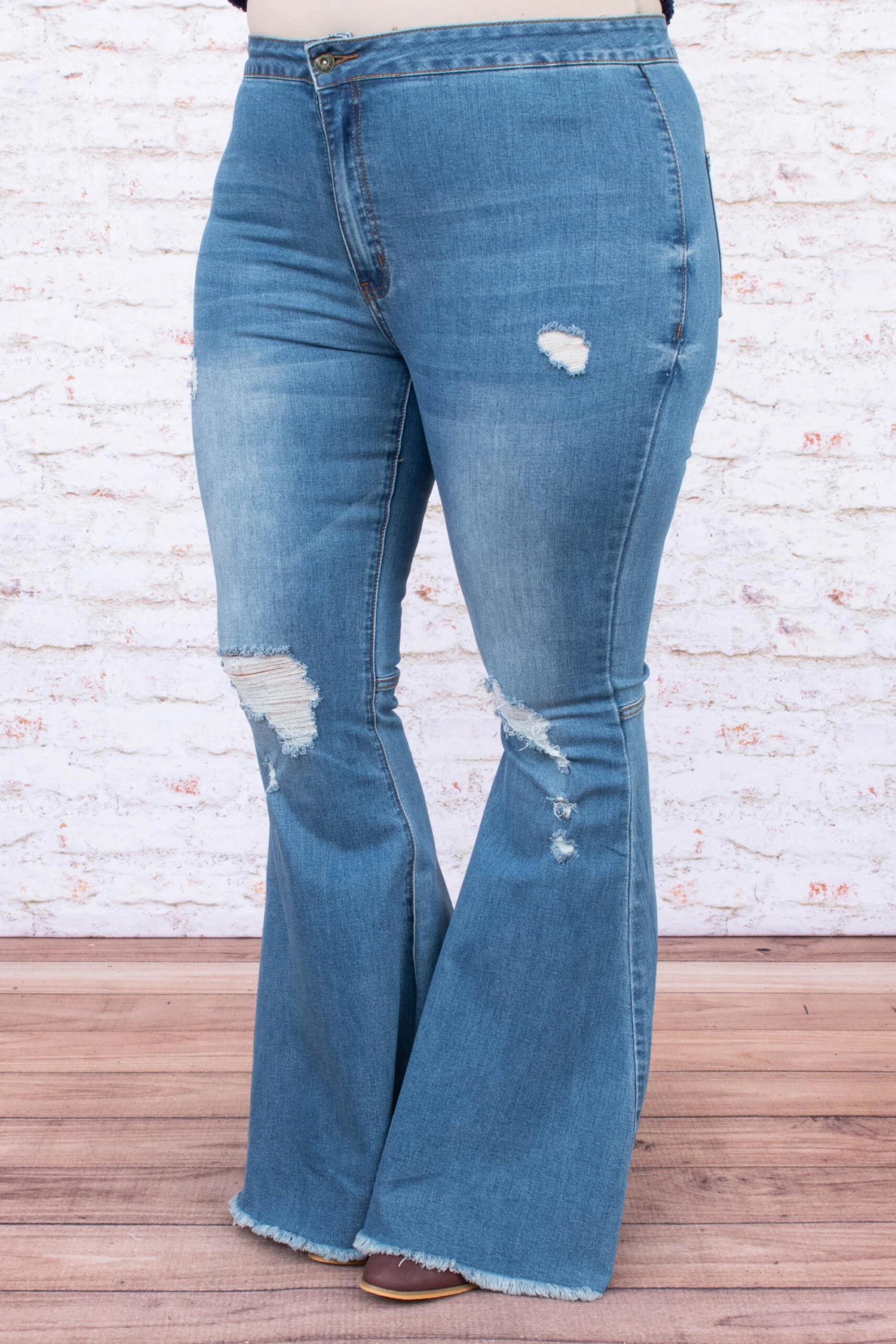 These daring flares are a must in your wardrobe! These jeans have a classic medium wash with the right amount of distressing for a look you can dress up or down and style for every occasion! They’re comfortable for all day wear, have a figure-flattering fit, and feature the cutest bell bottom! Simply, pair these jeans with a chunky sweater and heeled booties for an effortlessly chic look!