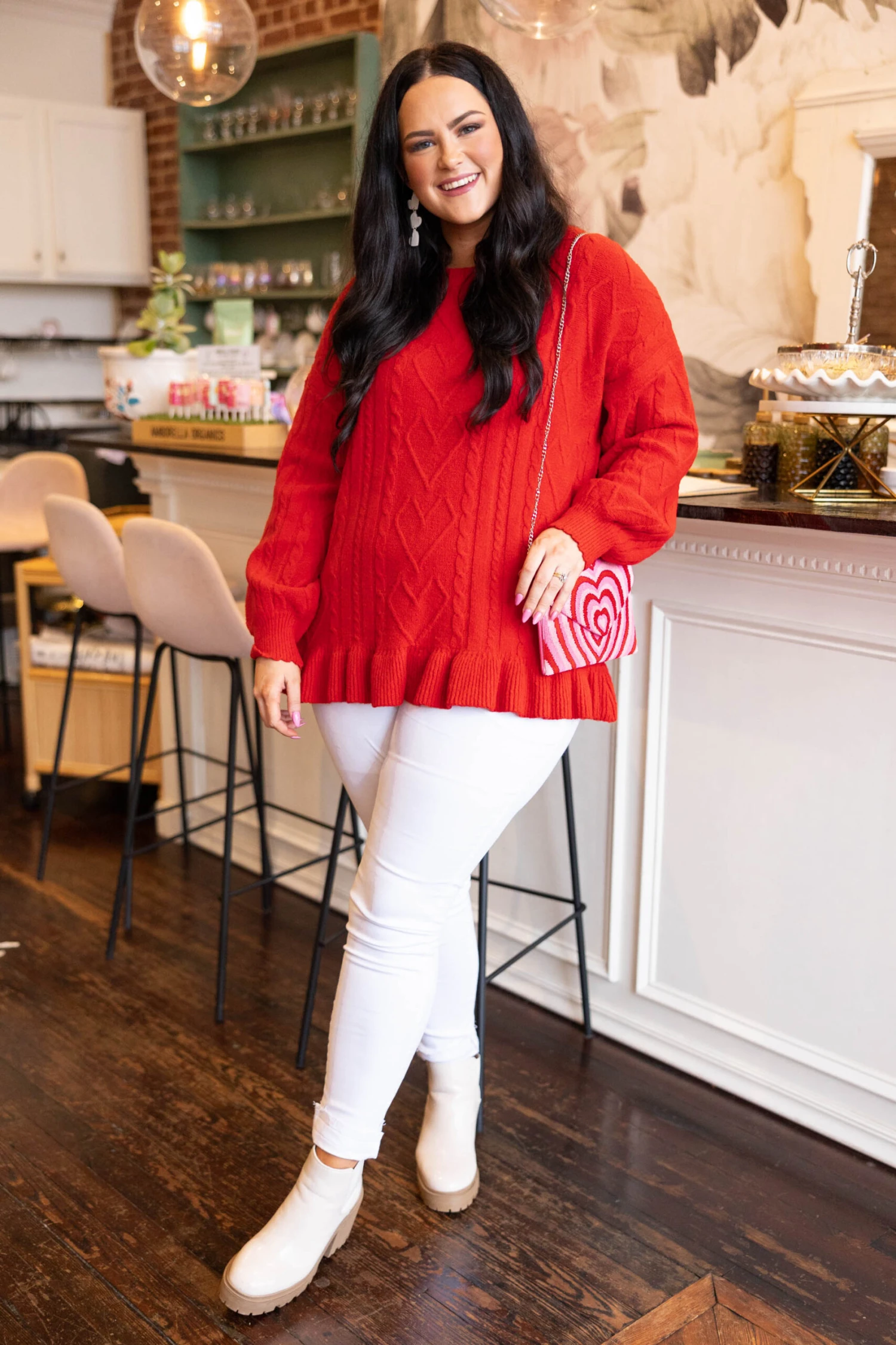 Our hearts are fluttering with love for this beautiful purse! It has a bold color that is just in time for the season! The beaded pattern and lightweight design is perfect for styling with all of your fave outfits for the ultimate chic look!