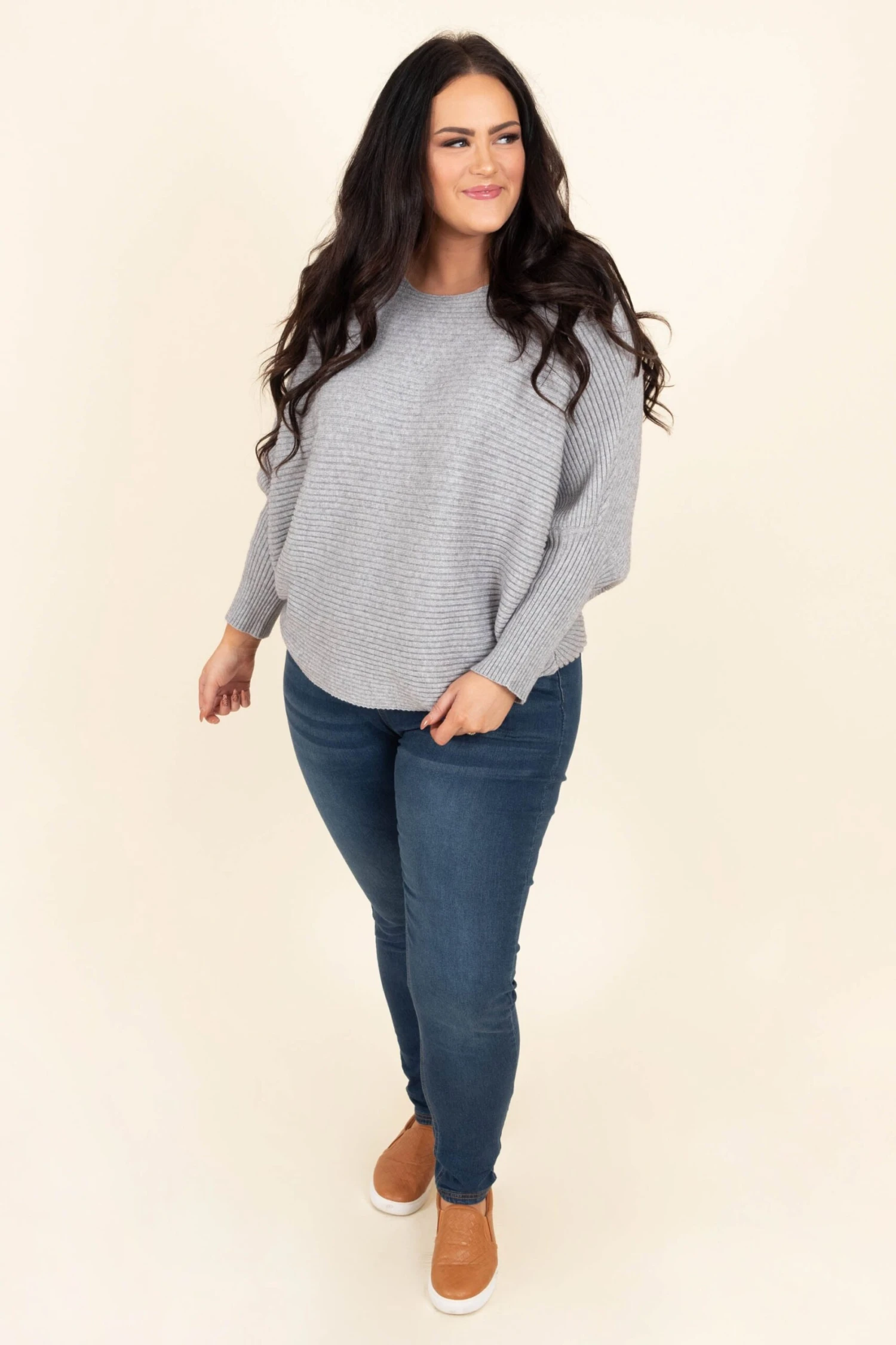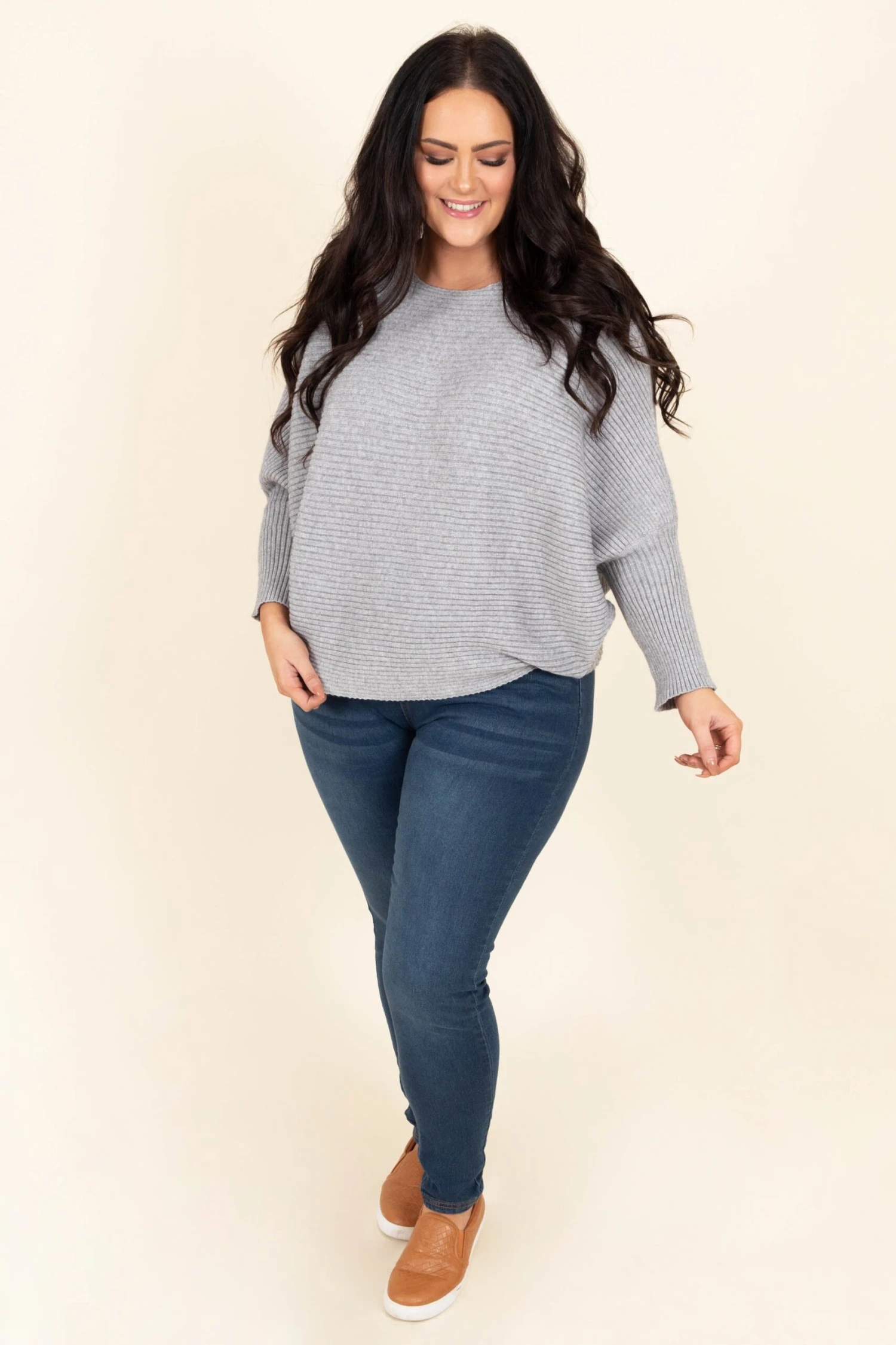 This sweater’s beauty is out of this world! It has a neutral heather grey color and a ribbed texture that is so comfy and sweet! The stretchy, figure flattering fit is perfect for all day wear this season! Simply style this top with some skinnies or leggings for a cozy chic look!
