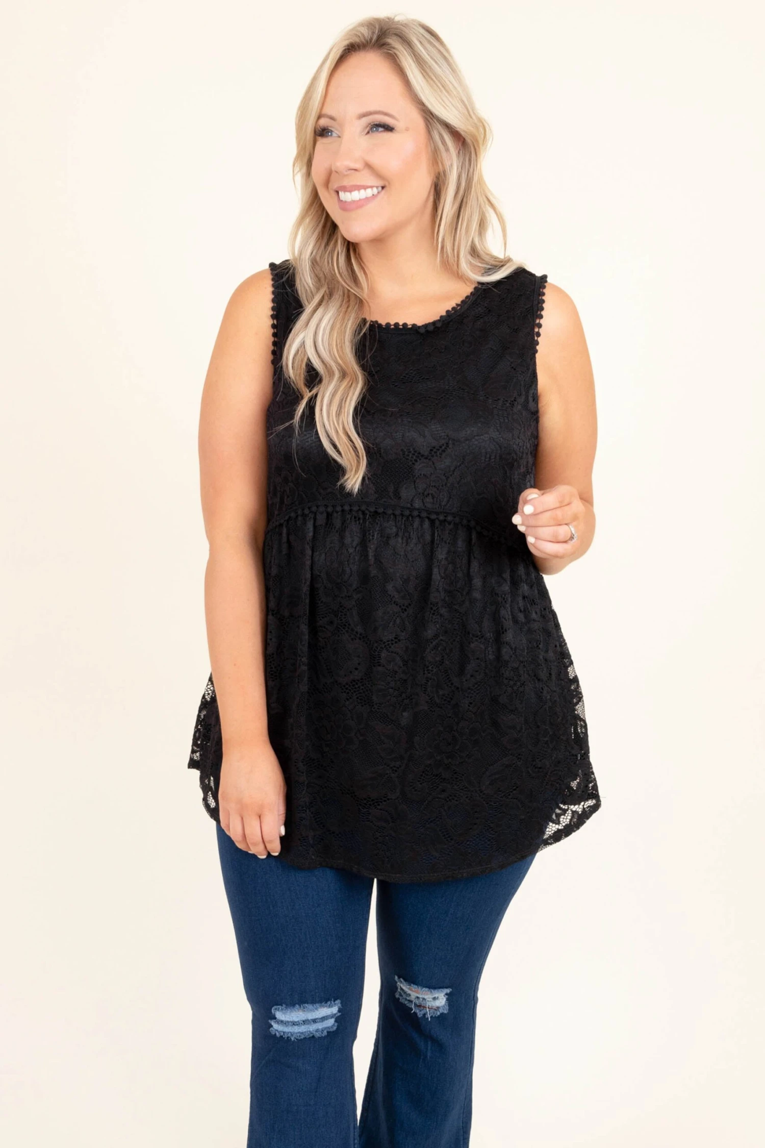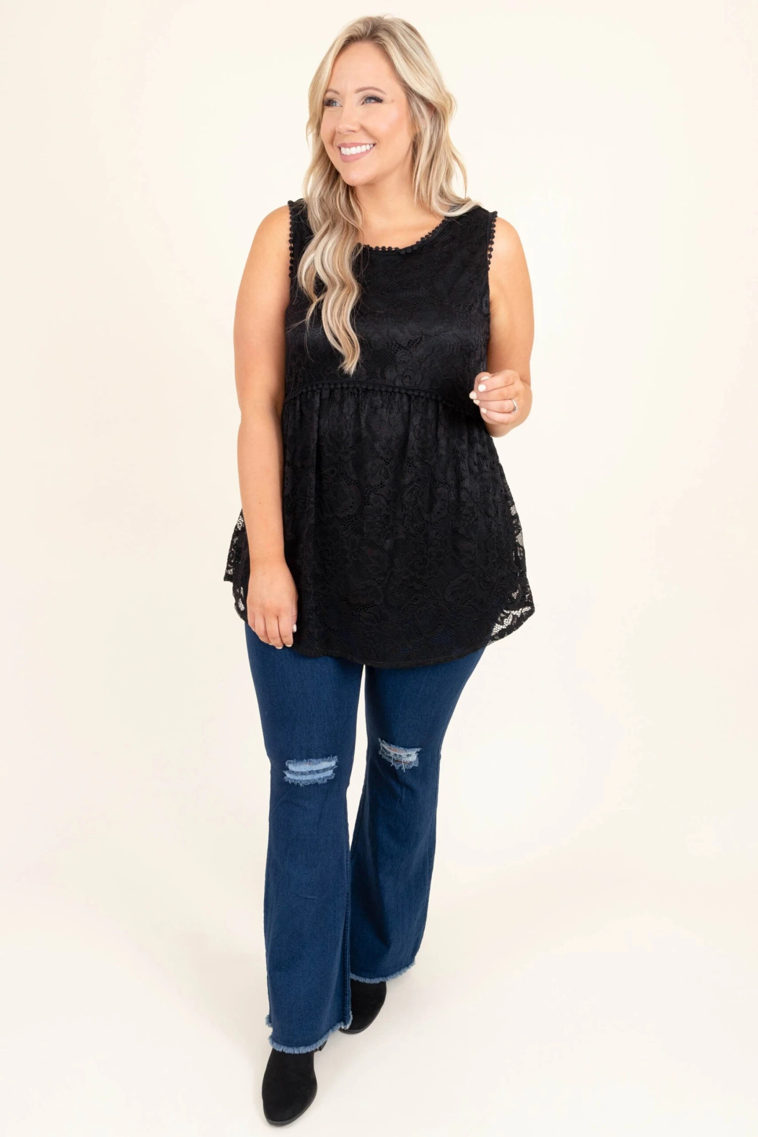 For what it’s worth, this top is definitely a must-have! The lovely lace design and beautiful black color easily pair well with all your favorite pants or skirts! Simply style this top with some distressed jeans and booties for a chic, everyday look!