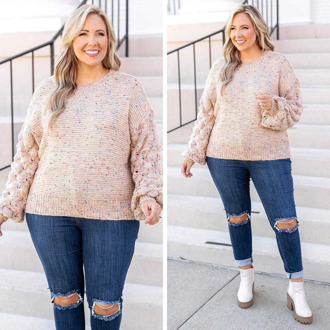 This sweater is so comfortable you will want to rock it forever! Make it an essential piece in your new wardrobe! It has a chic taupe-pink color you can style for every occasion! It’s comfortable for all-day wear, has a figure-flattering fit, and features the cutest bubble sleeves! Simply pair this sweater with skinnies and booties for an effortlessly chic look!